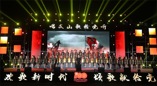 成信大师生把红色精神深情传唱,用《我的中国心》《红旗飘飘》《祖国不会忘记》《长江之歌》《爱我中华》《在希望的田野上》《国家》等经典曲目讴歌党、讴歌祖国,唱出了对党和祖国的忠诚与热爱。不忘来时路,走好当下路,全体成信人以歌声对话时空,《光辉百年》《天耀中华》《光荣与梦想》《前进吧,中国共产党》《灯火里的中国》《不忘初心》《少年》《我宣誓》《走向复兴》,一首首歌曲唱出了忠贞的誓言,歌颂了中国共产党领导人民不断创造奇迹、从胜利走向更大胜利的百年历史,表达了成信人赓续荣光,永远跟党走的坚定决心。