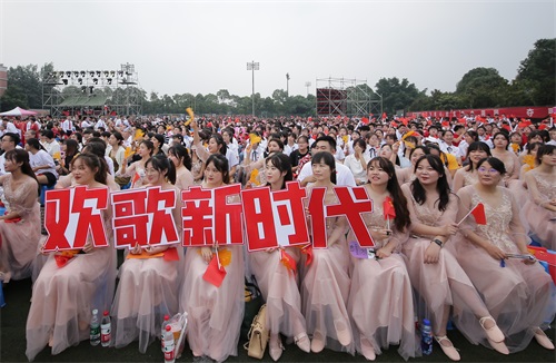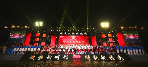 【本网讯】放歌伟大新时代,唱支山歌给党听。6月26日晚,学校庆祝中国共产党成立100周年师生合唱比赛暨2020年度“青春榜样”颁奖典礼在航空港校区第一田径场举行。本次活动由中共云博体育委员会主办、学校党委组织部、党委宣传部、党委学生工作部、工会、团委承办。学校党委书记周激流,校长余敏明,党委副书记马洪江,省纪委监委驻校纪检监察组组长、校党委副书记、纪委书记雷超,副校长于世祥、何建新、范广洲、舒红平、朱明,党委常委、党委组织部部长、统战部部长熊建,全体中层干部、辅导员、2020年度青春榜样获得者以及22支合唱代表队等师生参加了活动。
