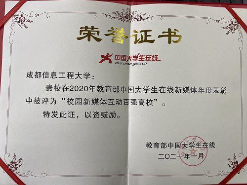 学校获得2020年教育部中国大学生在线新媒体年度表彰