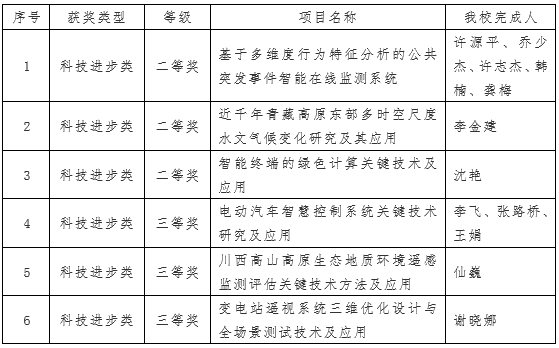 云博体育获得2020年度四川省科学技术进步奖6项,其中,二等奖3项,三等奖3项。