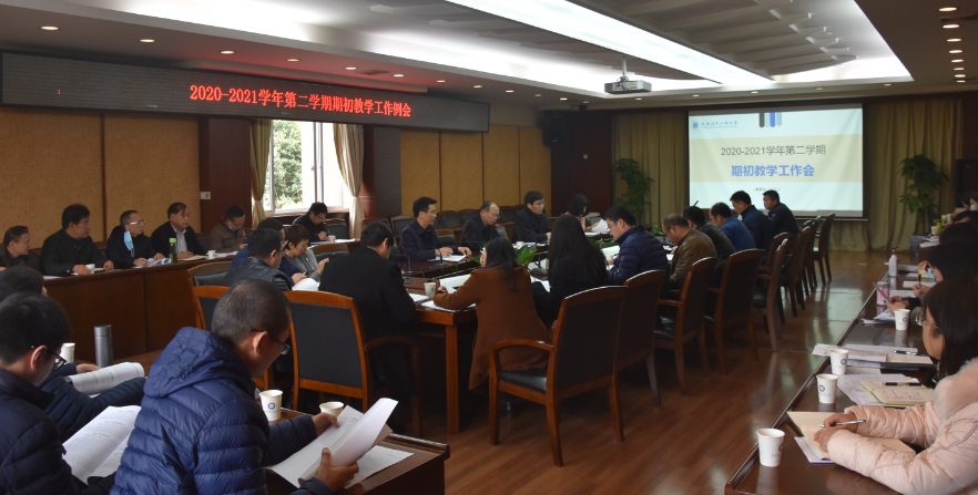 会上,教务处副处长易平对上学期部分公共课课程总结、考试成绩进行了分析说明,对本学期日常教学运行、教学奖励评选工作做了说明。副处长彭静介绍了近期学籍管理、教研教改、工程教育专业认证工作安排。副处长李代伟对实践教学、实验室管理,双创教育有关竞赛和大创项目等工作做了说明。