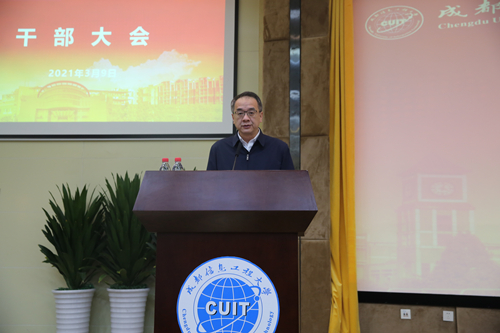 【本网讯】3月9日上午,学校在航空港校区国际会议厅召开干部大会,全体校领导、中层干部参加了会议。会议由学校党委书记周激流主持。