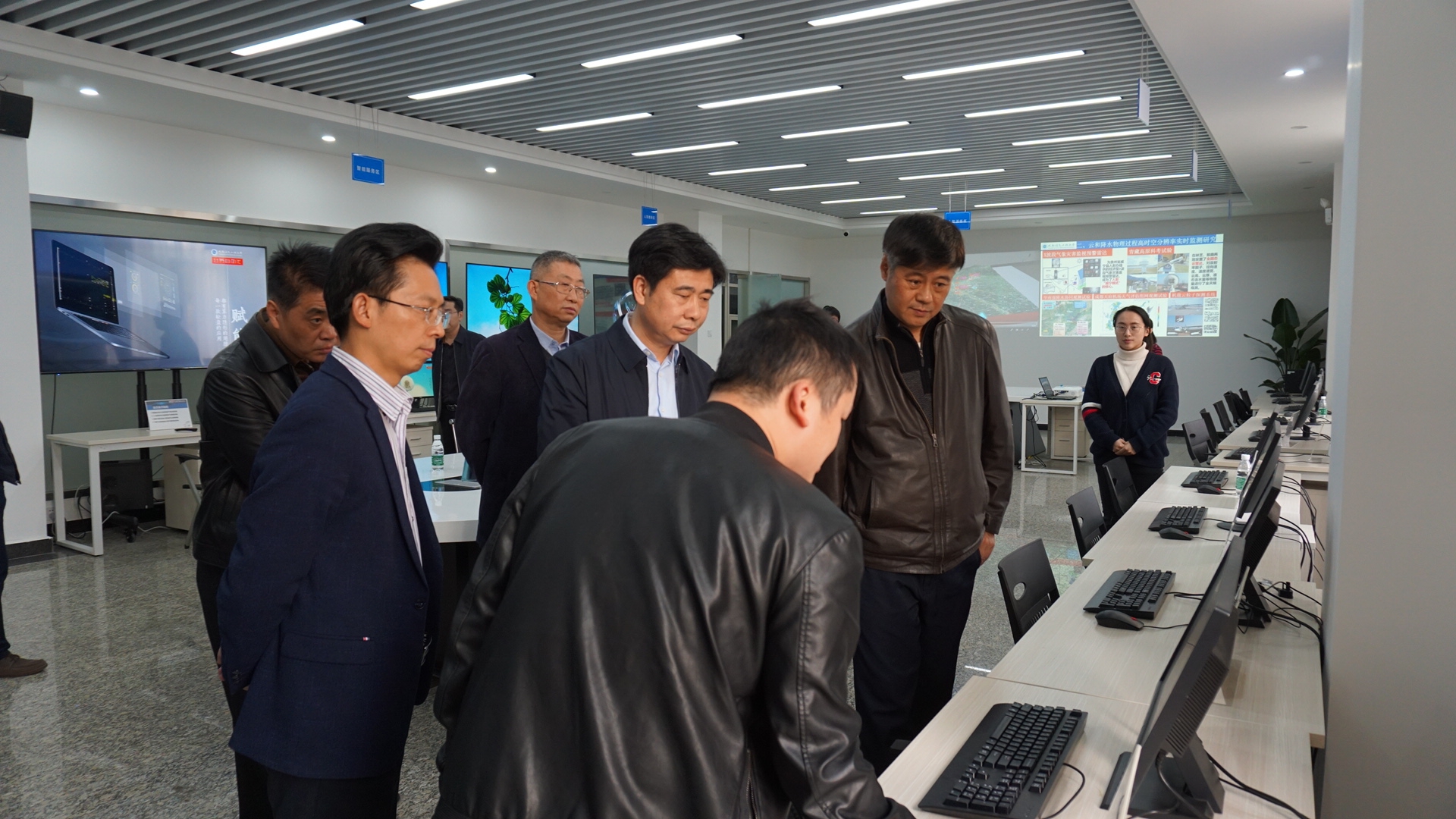 在校调研期间,熊绍员一行参观考察了“中国气象局-云博体育人工影响天气联合研究中心”和“中国气象局大气探测重点开放实验室”。