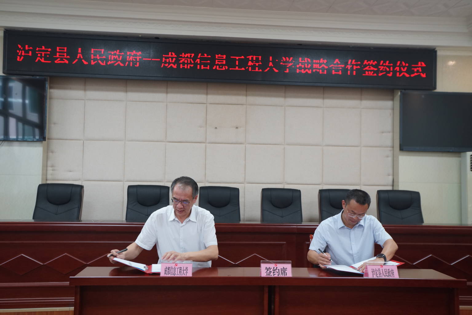经过多次接洽和细致磋商,我校与泸定县人民政府最终达成共识,余敏明与泸定县县委副书记、县长祝邦文代表校地双方签署了战略合作协议。