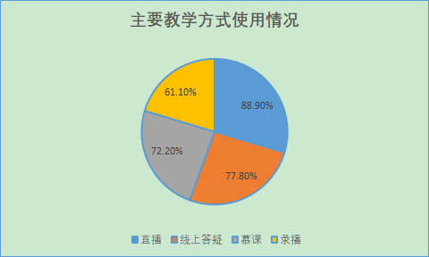 教师线上教学方式也是多种多样,主要以直播、录播、慕课教学和线上答疑为主,也有部分教师采用几种教学手段结合的混动式教学方式。