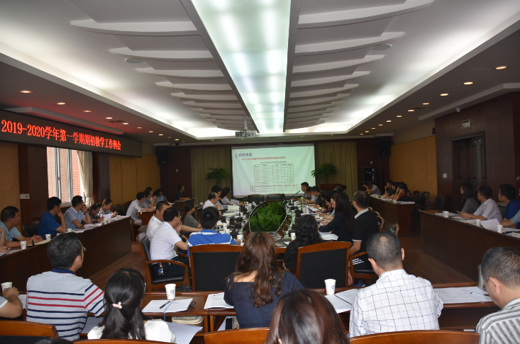【本网讯】9月6日下午,学校2019—2020学年第一学期期初教学工作例会在航空港校区第七会议室召开。副校长何建新,各教学单位负责人、主管教学工作负责人、教务科科长、教学秘书,教务处负责人及工作人员参加了会议。会议由教务处处长方睿主持。