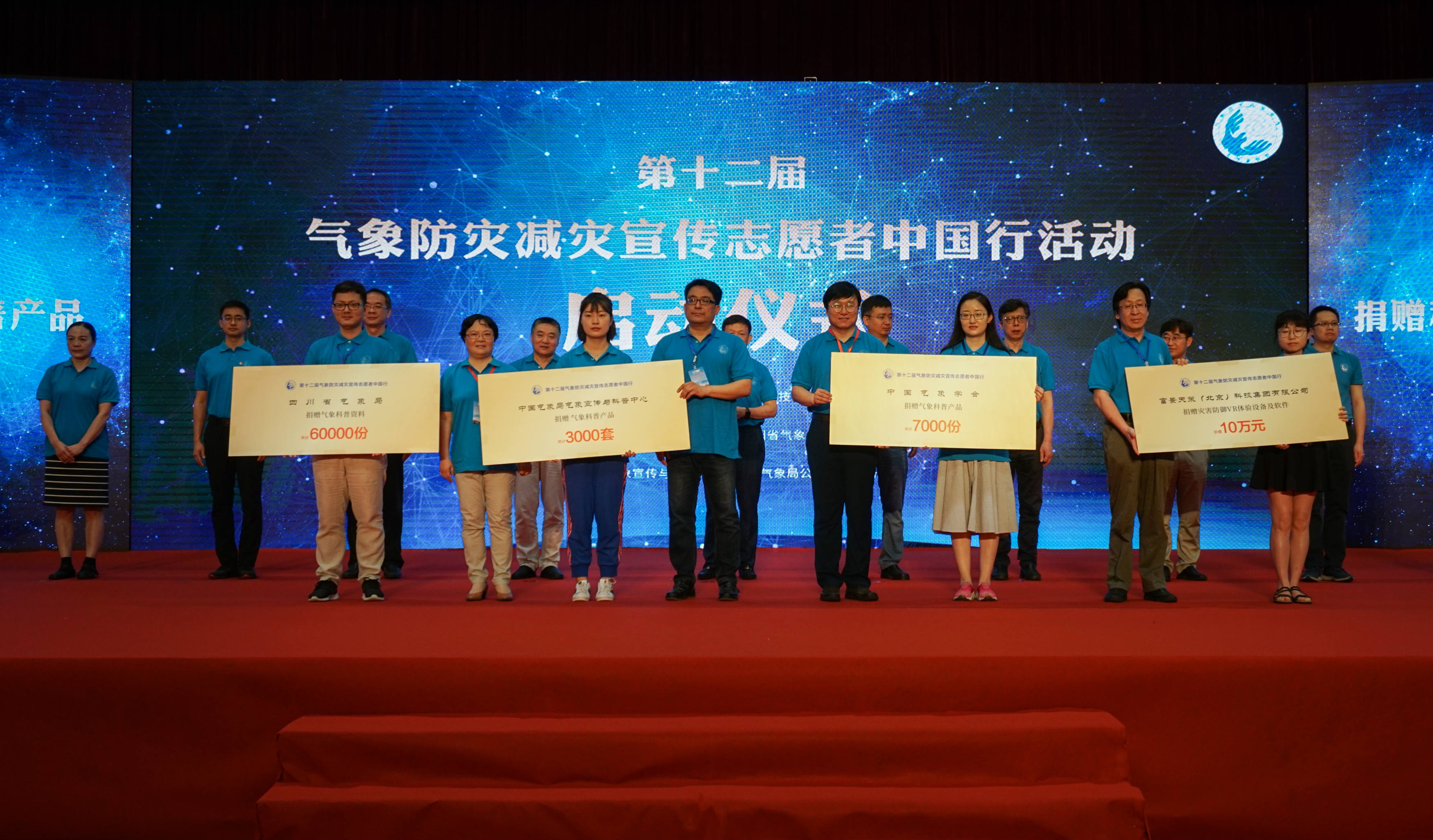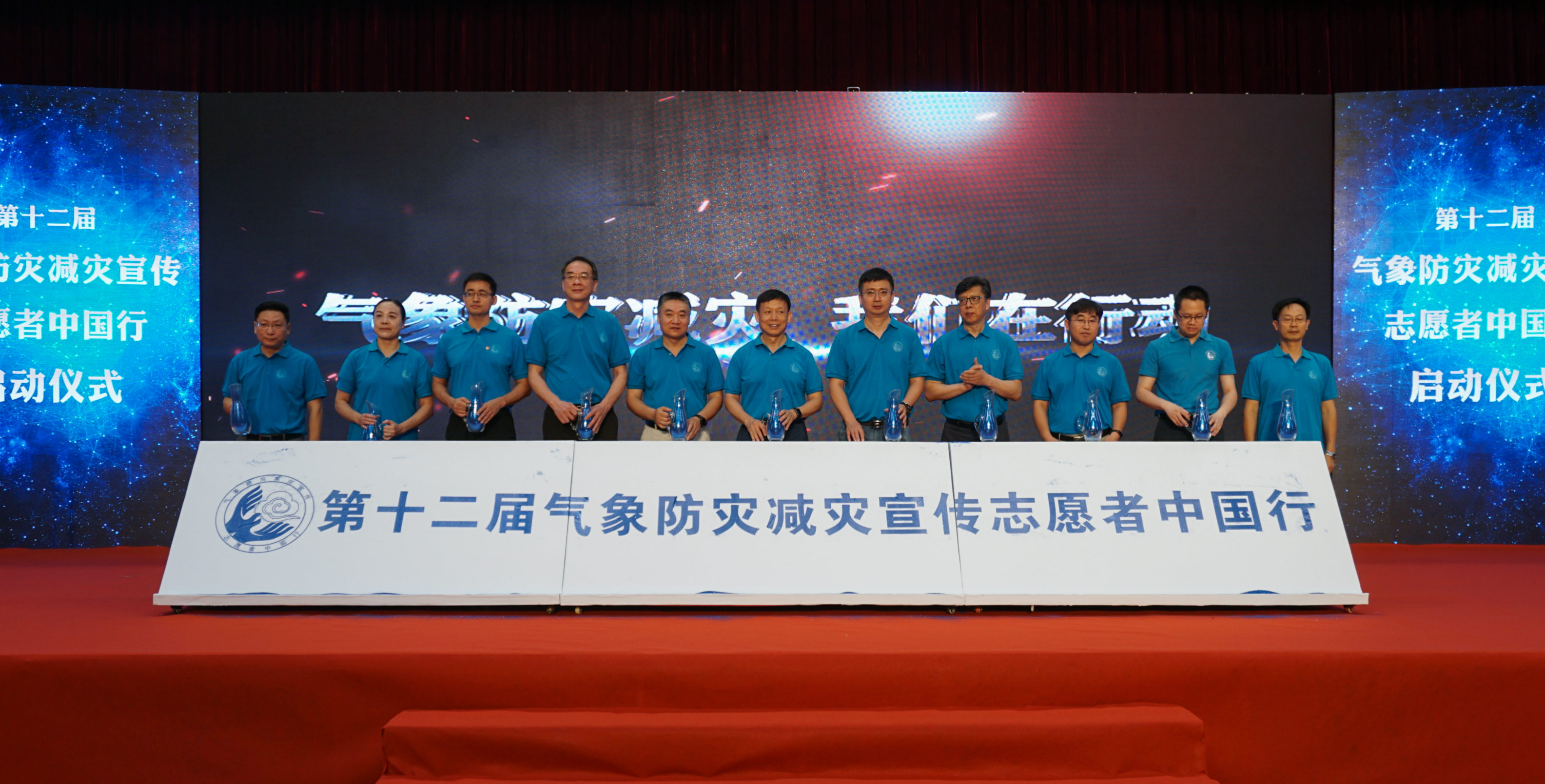 与会领导共同启动了第十二届“气象防灾减灾宣传志愿者中国行”活动。