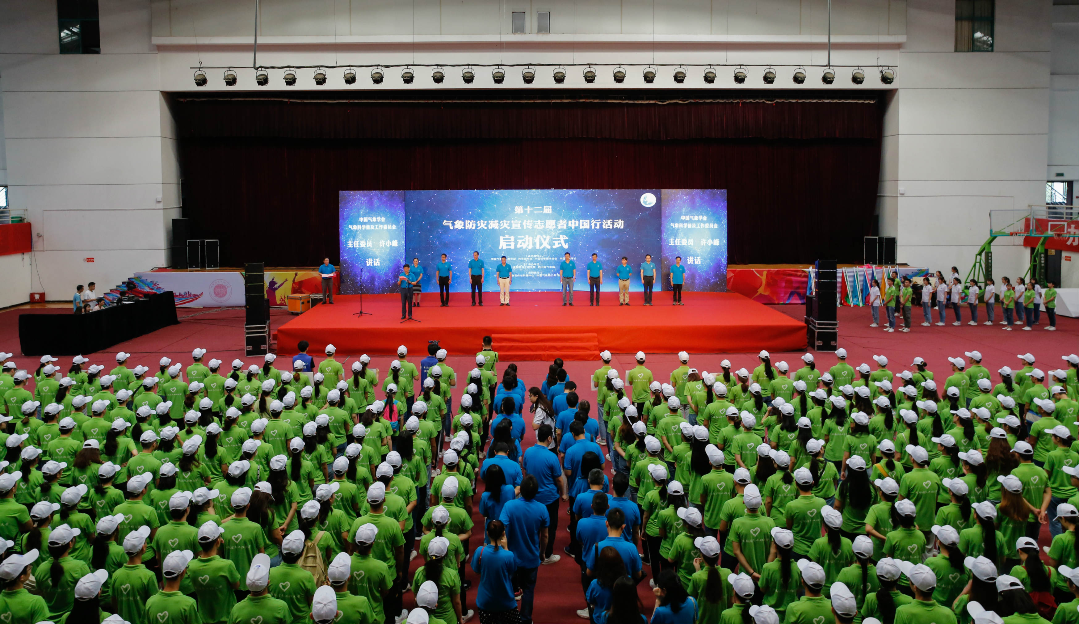 【本网讯】6月29日,由中国气象局、教育部、共青团中央、中国科学技术协会和中国气象学会主办,云博体育、四川省气象局承办,中国气象局公共气象服务中心、中国气象局宣传与科普中心支持,各省市气象局、气象学会、教育厅、团委、科协,南京信息工程大学等15所高校协办的第十二届“气象防灾减灾宣传志愿者中国行”活动启动仪式在学校航空港校区体育馆举行。