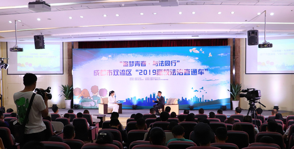 6月13日,在国际会议厅,学校与成都市双流区司法局、成都市广播电视台经济资讯服务频道共同录制了《法治直通车》节目。相关单位负责人以及200余名学生参加了节目现场录制。通过贩毒、吸毒、校园贷等违法犯罪案例视频播放、新型毒品介绍、防艾知识宣讲等方式,节目主讲律师现场以案说法、以案说责,让大学生们在学习掌握相关法律知识的同时,进一步增强安全防范意识和法治意识。在“选择毒品,毒品就让你无从选择”“珍爱生命,远离毒品”“青春在阳光下绽放,生命在毒品中凋亡”的口号声中,节目录制圆满结束。