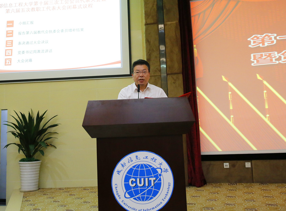 党委书记周激流在闭幕式上作总结讲话。他代表学校对各位代表的积极参与和大力支持、对全体工作人员的辛勤劳动表示衷心的感谢。对大会取得的各项成绩表示热烈的祝贺。他强调,本次大会是以习近平新时代中国特色社会主义思想为指引,在全面贯彻党的十九大精神和省委十一届三次、四次全会各项决策部署,以及全国全省教育大会精神之际召开的一次重要会议,是学校面对新形势、谋划新发展、实现新跨越的一次十分重要的大会,会议必将对我校当前和今后一段时期的改革发展起到极大的促进作用。
