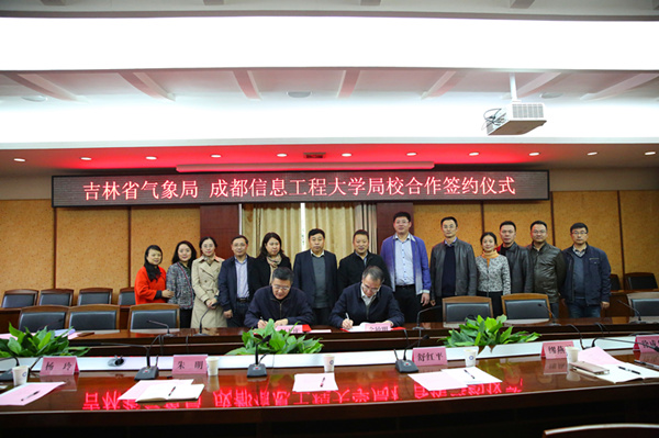 【本网讯】11月16日,吉林省气象局局长、党组书记赵大庆,人事处处长于宝刚,科技预报处处长曲华,党组纪检组副组长聂佳,科研所所长高枞亭,科技处副处长蔺豆豆、赵男一行访问我校并签署局校合作协议。会议由学校副校长舒红平主持。