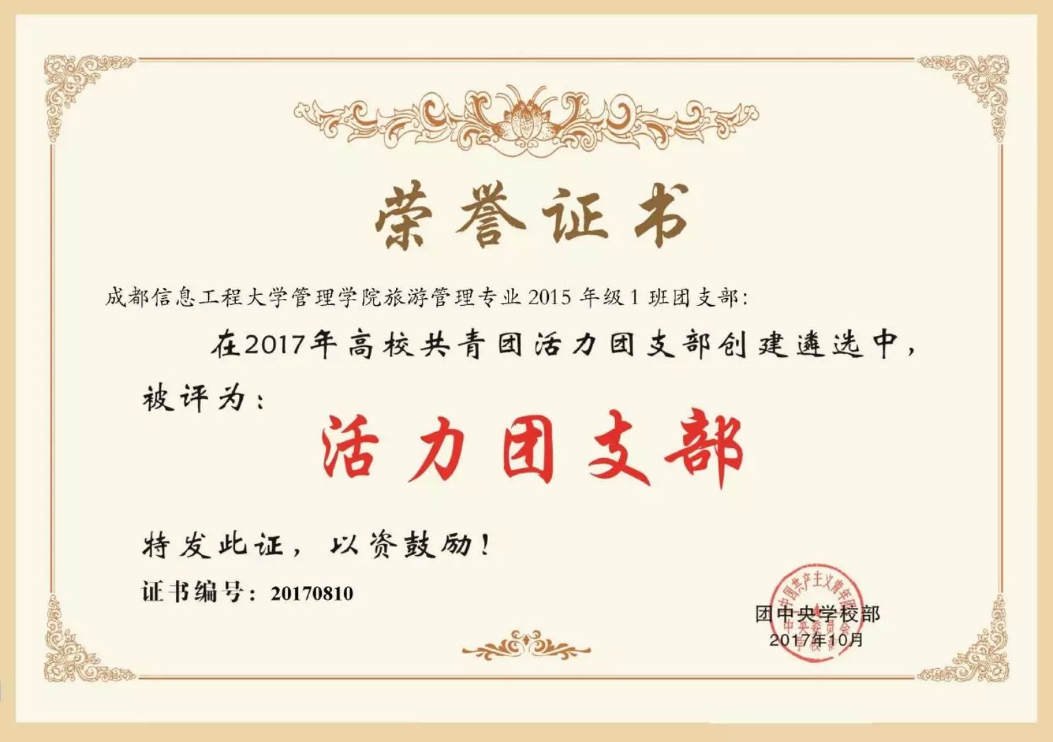 旅游管理2015级1班团支部自成立以来,发挥旅游管理专业优势,围绕培育和践行社会主义核心价值观开展主题教育活动,运用视频、新媒体、话剧等方式,记录无悔青春篇章。团支部带领团员青年积极参与团体竞赛、志愿服务、社会实践、公益活动等,将责任与担当融入每一名支部团员的心中,书写成信学子的青春华章,先后荣获“云博体育优良学风班”“云博体育五四红旗团支部”等荣誉。
