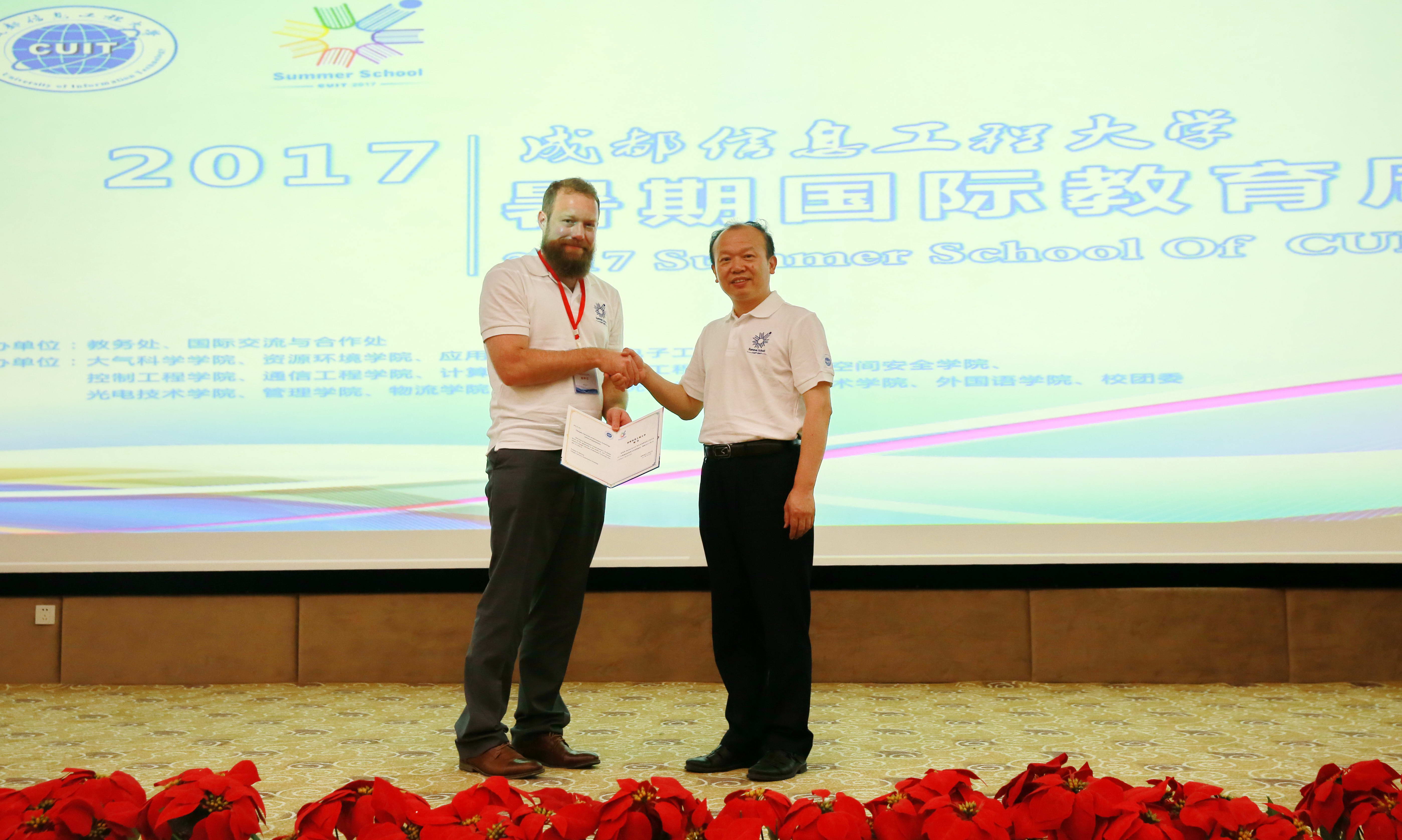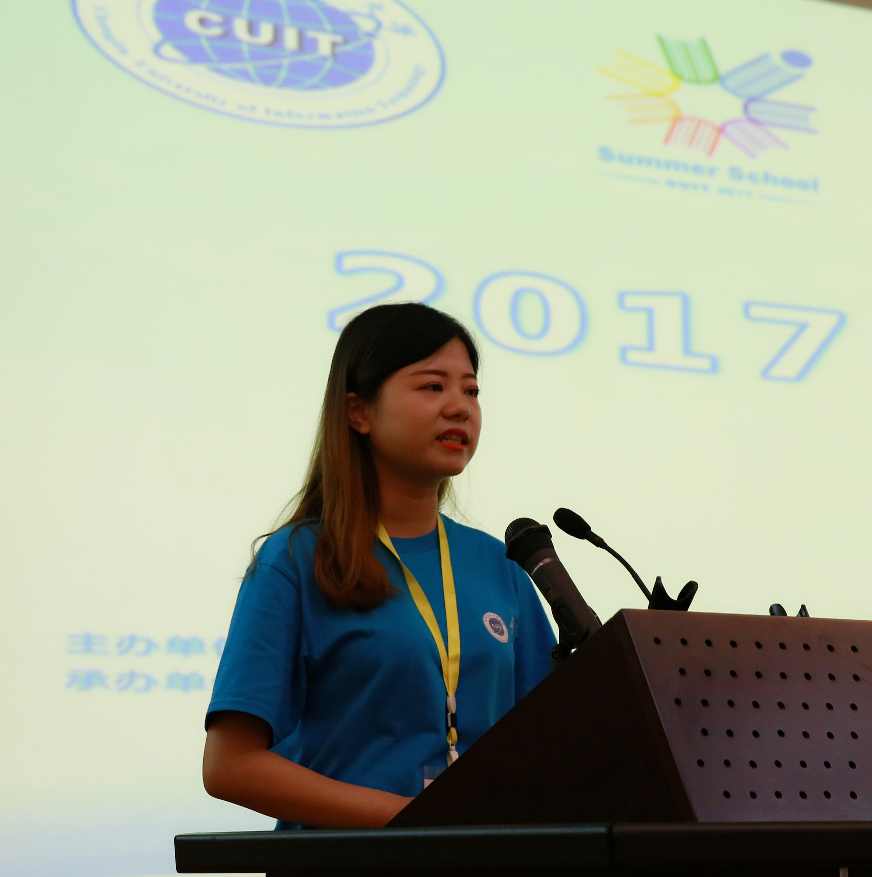 【本网讯】7月12日,学校2017年暑期国际教育周(2017  Summer  School  of CUIT)在学校国际会议厅盛大开幕。本次暑期国际教育周邀请了11个国家的21位外籍专家,分别来自哥伦比亚大学、美国科罗拉多州立大学、皇家墨尔本理工学院等国际知名学府,全体外籍专家与16个学院学生代表齐聚一堂,共同开启了此次活动。学校副校长何建新以及学校有关单位负责人参加了开幕式。