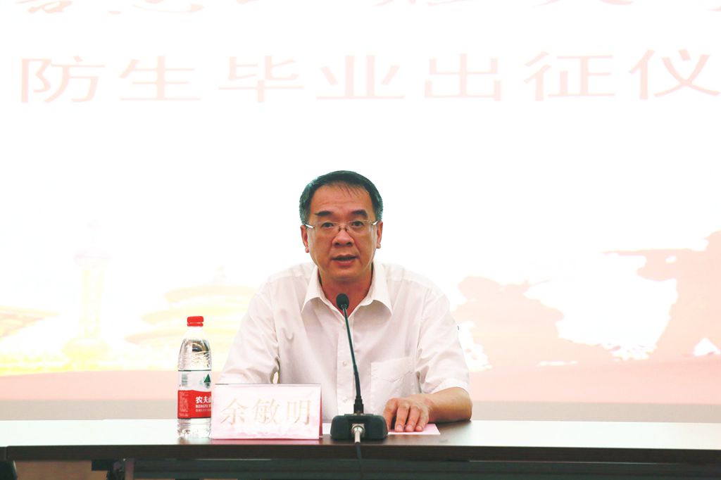 余敏明代表学校寄语2017届国防生并提出三点要求:一要坚定信念,筑梦军营。要将个人理想与中国梦强军梦有机结合,将个人价值与军队建设需求紧密联系,坚定不移地投身强军兴军的改革实践。二要真抓实干、打赢硬仗。要以抓铁有痕、踏石留印的工作作风,立足岗位平台,让青春在报效祖国和服务人民当中闪光。三要勤学好问,孜孜不倦。要保持本领恐慌、知识恐慌,秉承成信大“尊师、好学、励志、笃行”的学风,不断武装自己的头脑。他希望国防生同学能够与基层官兵同心协力,与强军改革同频共振,在部队基层一线、在作战哨位上大显身手、施展才华、创造辉煌。