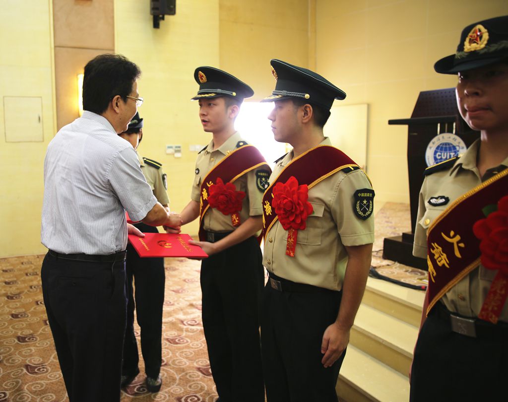 火箭军驻校选培办负责人宣布毕业国防生派遣预案,并寄语2017届国防生要把汗水和成绩留在成信大,把属于国防生的光荣与梦想、爱与希望带往祖国的大江南北,虽历经风雨,依然不忘初心,砥砺前行,矢志报国,圆梦军营!