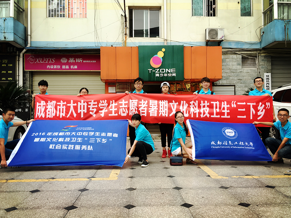 2016年暑期,我校按照中宣部、中央文明办、教育部、共青团中央、全国学联等联合部署,以“青春建功十三五·携手共筑中国梦”为主题,广泛开展了大学生暑期“三下乡”社会实践活动。学校集中组织了2000余名师生,186支社会实践团队,其中包括3支市级重点团队、15支校级重点分队、100多支院级重点小分队,赴全国各地开展了践行社会主义核心价值观、国情社情观察、精准扶贫、气象科普、科技支农、教育关爱、文艺服务、爱心医疗等专项社会实践活动,取得了良好的社会效应,得到了大量媒体的关注。其中,由我校学生会及部分学院学生会骨干组成的云博体育“践行社会主义核心价值观”志愿者服务队,赴双流区湖夹滩街道等地针对留守儿童开展了爱心支教、敬老帮困、“践行社会主义核心价值观”宣传教育等多项活动,展现了成信学子良好的精神风貌,得到了当地政府和群众的一致好评。同时,各实践团队结合自身专业开展多项社会实践调查活动,在专业教师的指导下形成了多个社会实践调查成果,为政府基层治理政策的制定提供了重要参考依据。
