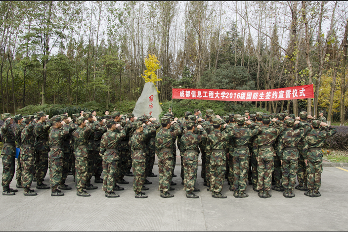 最后,2016级国防生新生在横幅上郑重的签下自己的名字和誓言。