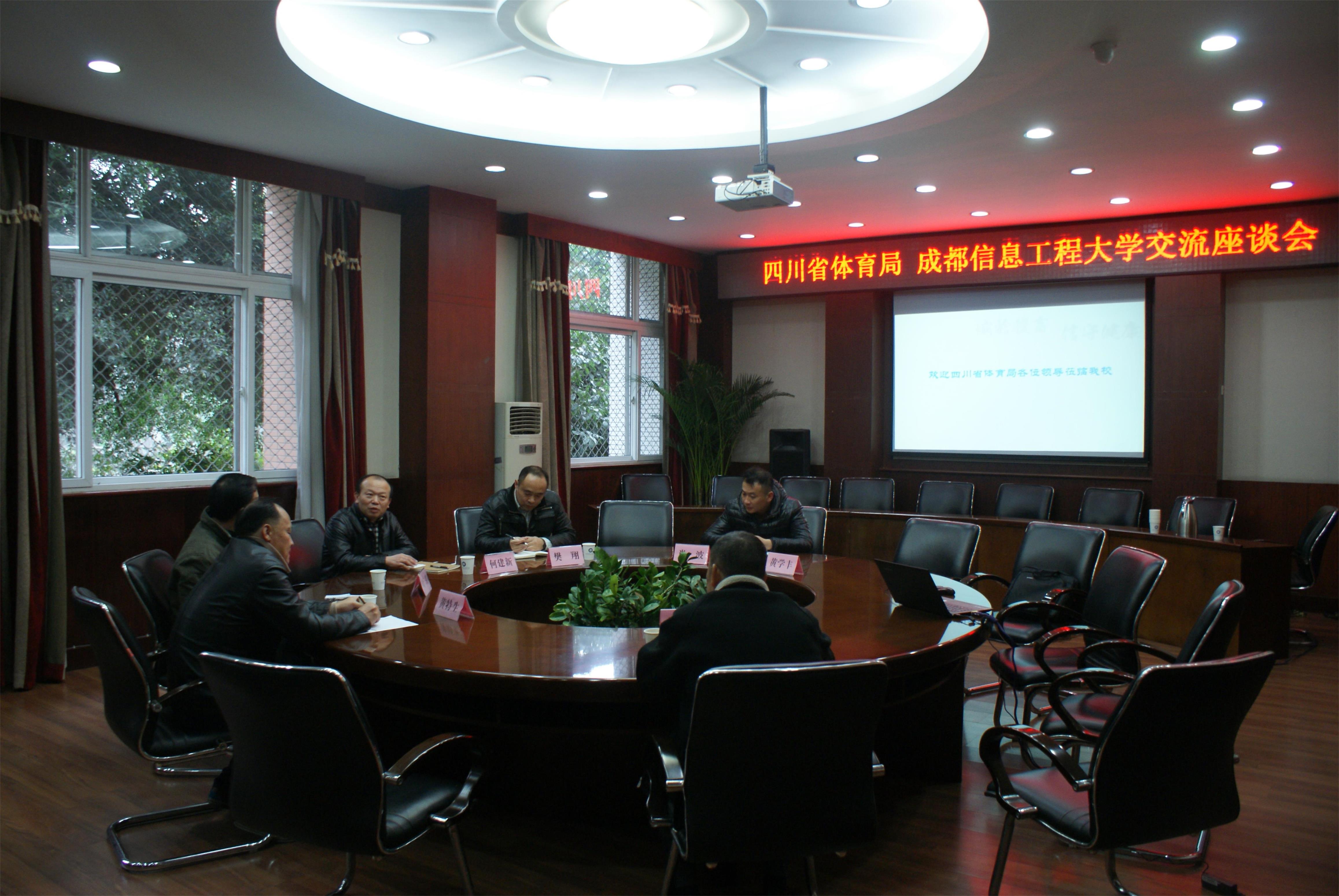 【本网讯】11月22日下午,四川省体育局副局长刘践、竞赛处处长黄特生、拳跆中心主任康翔一行来我校进行工作交流。学校副校长何建新,体育部副主任樊翔、体育部党政办、教务办负责人与刘践一行进行了会谈。