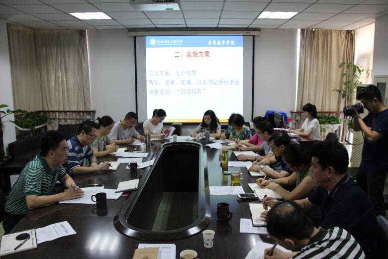 【本网讯】6月24日上午,学校“两学一做”学习教育第六督导组组长于世祥副校长一行到应用数学学院对“两学一做”学习教育工作进行督导检查。学院党总支书记杨光崇、副院长周钰谦、杜先云、吴泽忠以及各支部书记等参加。
