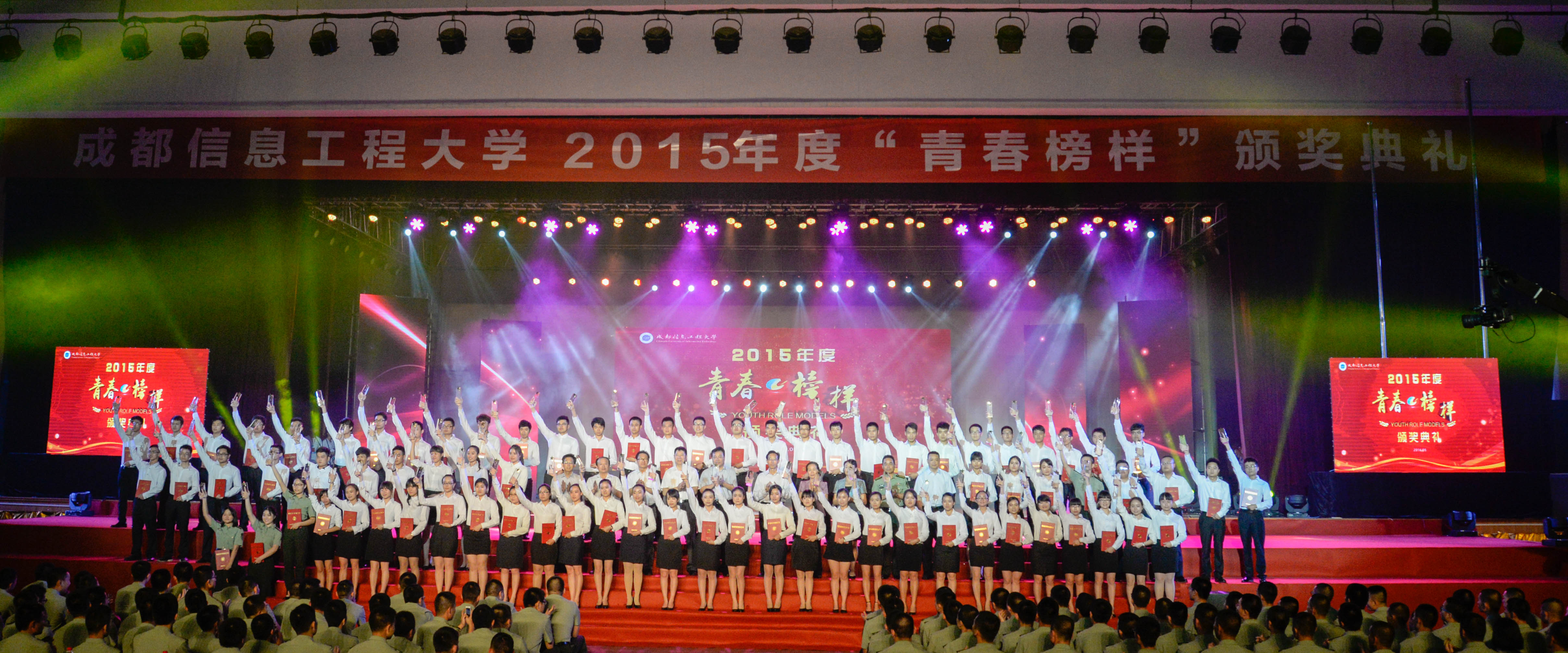 【本网讯】5月31日晚,学校2015年度“青春榜样”颁奖典礼在航空港校区体育馆隆重举行。学校党委书记赖廷谦,校长周激流,副书记敬枫蓉,副校长余万伦、于世祥、贺盛瑜、何建新,火箭军驻校选培办王主任,校长助理肖月强、范广洲,全体中层干部,部分师生代表共3000余人参加了颁奖典礼。