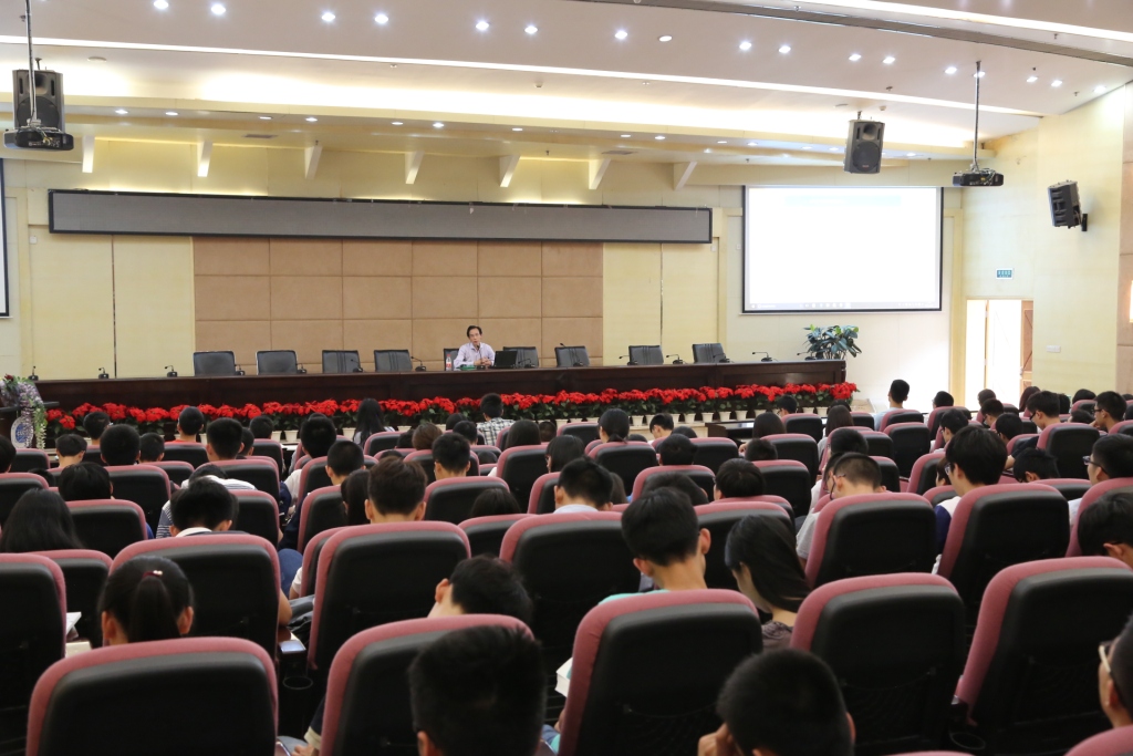 【本网讯】 5月20日下午,为深入贯彻中宣部、教育部《普通高校思想政治理论课建设体系创新计划》和教育部《高等学校思想政治理论课建设标准》的文件精神,落实省委宣传部、省教育厅《普通高校思想政治理论课建设体系创新计划四川省实施方案》的要求,学校党委书记赖廷谦为本科生作了主题为“以国家‘四个全面’战略布局和‘五大发展新理念’为引领,建设开放的特色鲜明的高水平信息工程大学”的形势与政策报告。报告会由政治学院副院长李忠伟主持,240多名一年级本科生及政治学院部分教师聆听了报告。
