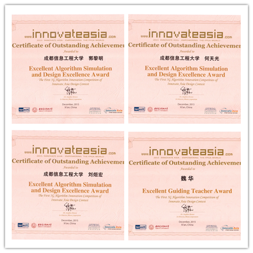 我校通信工程学院研究生二年级学生何天光,郭黎明,刘烜宏,由魏华博士和李蠡博士任指导老师,并组成团队,选择Polar Code为赛题参与这次大赛。经过七个多月的努力,他们成功进入全国仅有30支队伍入围的决赛(我校参赛队是唯一一支来自二本院校的团队),并最终取得“优秀算法仿真设计奖”。