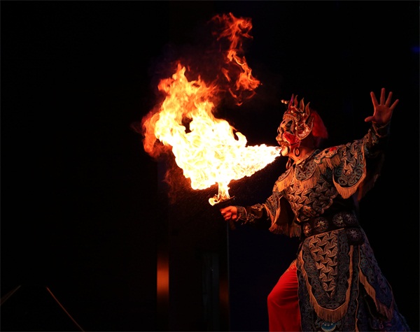 演出在戏曲舞蹈《春色满园》中拉开帷幕,舞者以柔美的水袖撩动观众的心弦,在秋冬时节散播暖意。优秀演员王玉梅带来的川剧戏歌《咏梅》用婉转动人的歌声赞颂梅花临悬崖百丈冰依旧娇俏。一出由木偶主演的折子戏《白鳝观景》意趣横生。互动环节中,现场四位同学学习了水袖技巧,切身体会到传统文化的魅力。由优秀演员彭凌主演的川剧喜剧小品《九流相公》讲述了一位爱耍小聪明的“耙耳朵”的趣事,纯正的四川话对白有着浓厚的地方特色。高亢的京胡之音配上美不胜收的长绸舞,一曲《秋江》令人沉醉。川剧绝活变脸和吐火将演出推向高潮,台下观众掌声不断。演员走进观众席近距离表演了变脸,其高难度和零破绽引发阵阵掌声和欢呼。最后,演出在《春夜喜雨》的美妙歌声中闭幕。