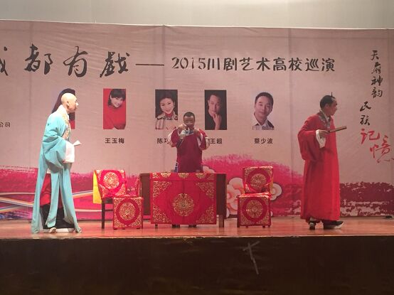 【本网讯】11月22日,由成都市委宣传部主办,成都晚报社承办,成都市川剧研究院、成晚传媒、云博体育宣传统战部、校团委协办的学校第七届大学生文化艺术节“成都有戏——2015川剧艺术巡回演出”在云博体育龙泉校区大礼堂举行。本次演出汇集了“梅花奖”获得者陈巧茹、王玉梅、王超,国家一级演员蔡少波、马丽等我市川剧最强阵容。川剧名家名角们共同唱响川剧艺术歌曲,现场演绎川剧折子戏、川剧喜剧小品等精彩节目,为在场的1600余名学生打造出一场视听盛宴,全场座无虚席、气氛热烈。