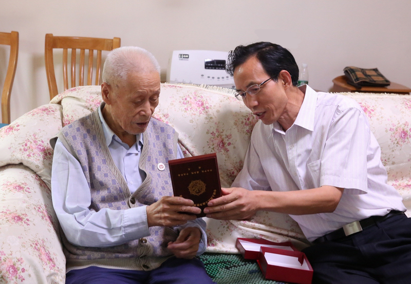 9月3日是中国人民抗日战争暨世界反法西斯战争胜利70周年纪念日。2日下午,校党委书记赖廷谦、副书记倪鸣代表学校走访慰问了我校张玉昆、王明山、王维、许荣耀、张占义等抗战老战士老同志及王健同志的家属,按照中央和省委统一安排,向他们发放“中国人民抗日战争胜利70周年”纪念章,并代表全校师生向抗战老战士们致以崇高敬意和诚挚问候。