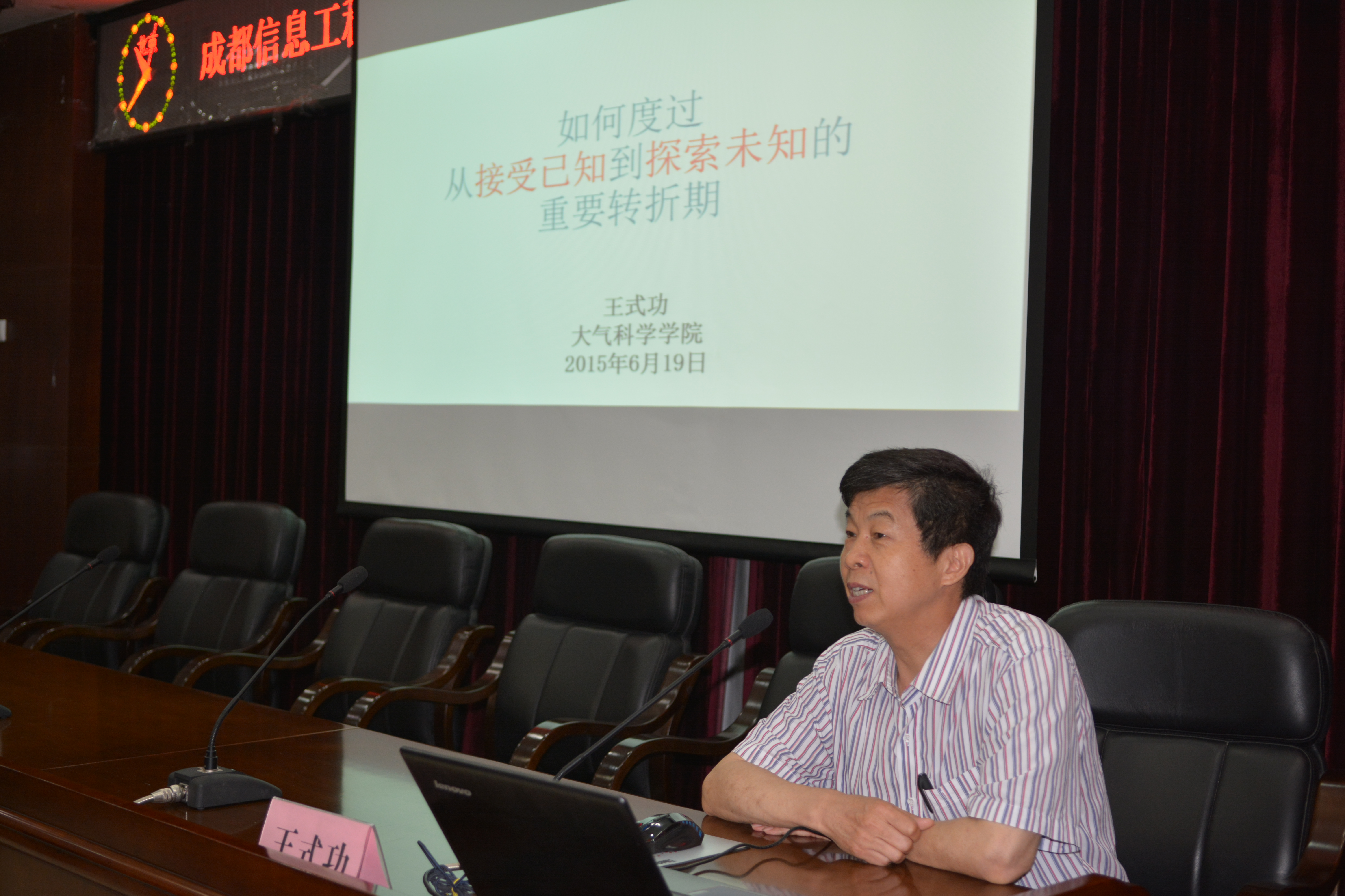 【本网讯】6月19日上午,我校2015“成信之光”论坛首场讲座在行政楼第一会议室成功举办。本场讲座主讲人是大气科学学院王式功教授,讲座由学校副校长于世祥主持。学生工作处、研究生处、校团委负责人,各研究生培养学院院长、书记,以及各学院研究生代表参加了本场讲座。