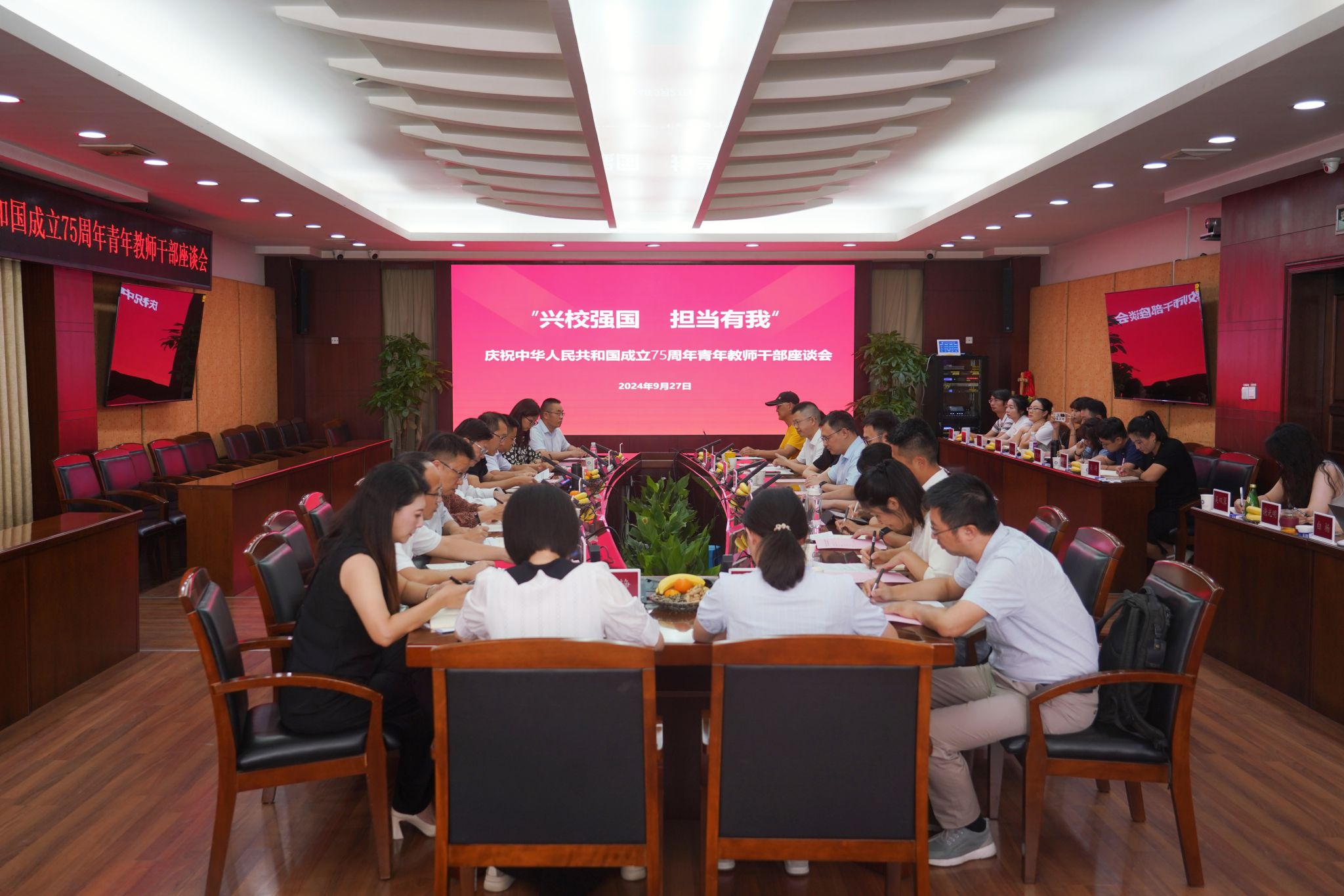 【本网讯】9月27日下午,学校在航空港校区行政楼七会议室召开“兴校强国、担当有我”庆祝中华人民共和国成立75周年青年教师干部座谈会。学校党委书记沈火明出席会议,党政办公室、党委宣传部、党委教师工作部相关负责人,30余名青年教师代表、青年干部代表参加座谈会。会议由党委常委,党委组织部、党委统战部部长熊建主持。