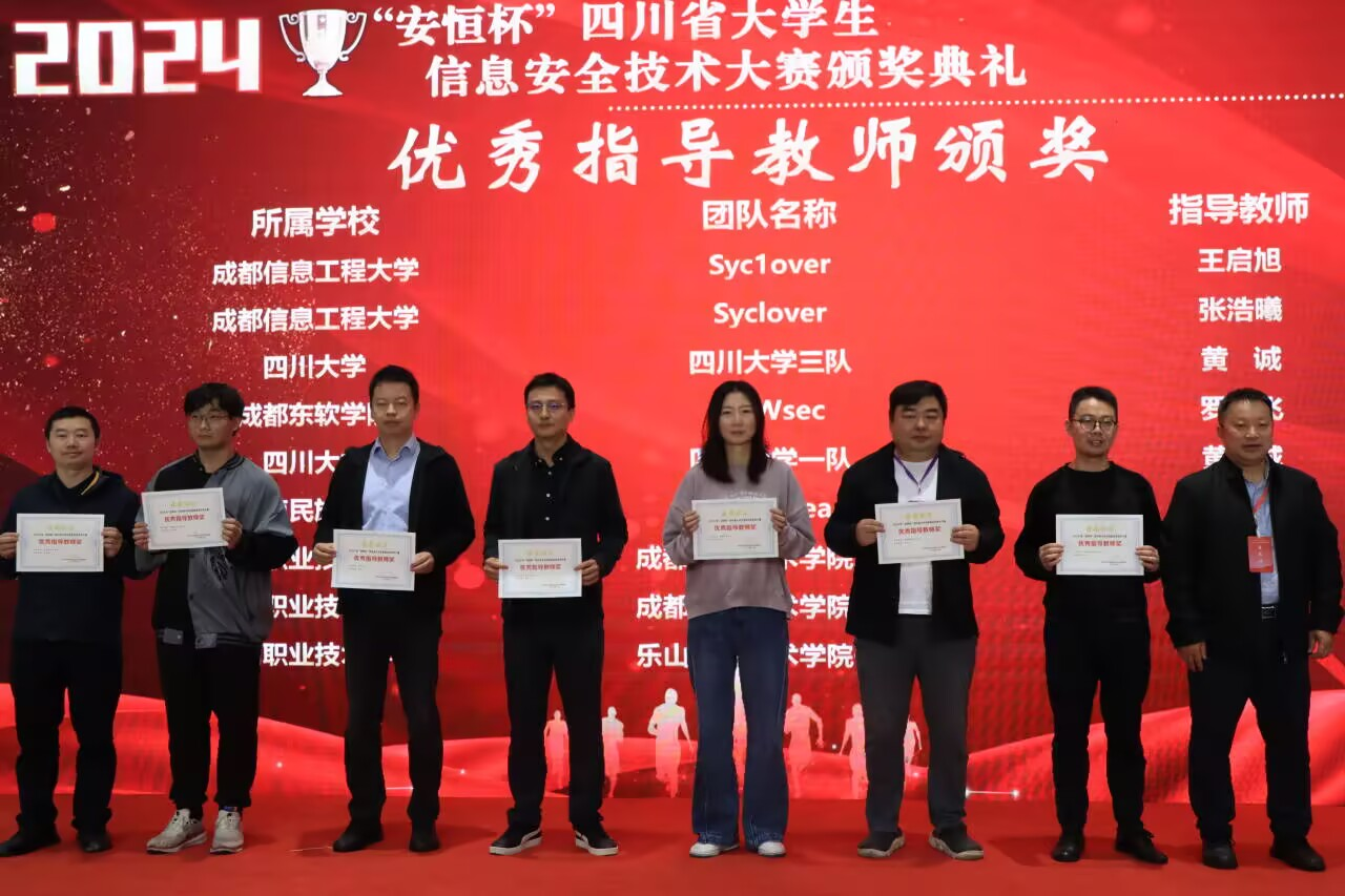 来自云博体育的Syc1over队伍获得了本次比赛的冠军。来自云博体育、四川大学、成都东软学院、西南民族大学、成都职业技术学院、乐山职业技术学院的9支队伍获得了本次大赛的一等奖,8名指导老师获得了优秀指导教师奖。来自西南石油大学、成都理工大学、四川师范大学、四川警察学院、绵阳城市学院、西华师范大学、成都大学、四川商务职业学院、泸州职业技术学院、绵阳职业技术学院、成都工业职业技术学院等高校的18支队伍获得了本次比赛的二等奖。来自成都工业学院、四川轻化工大学、攀枝花学院、四川传媒学院、西南科技大学、四川文理学院、中国民用航空飞行学院、四川信息职业技术学院、四川邮电职业技术学院、成都工贸职业技术学院等高校的26支队伍获得了本次比赛的三等奖。