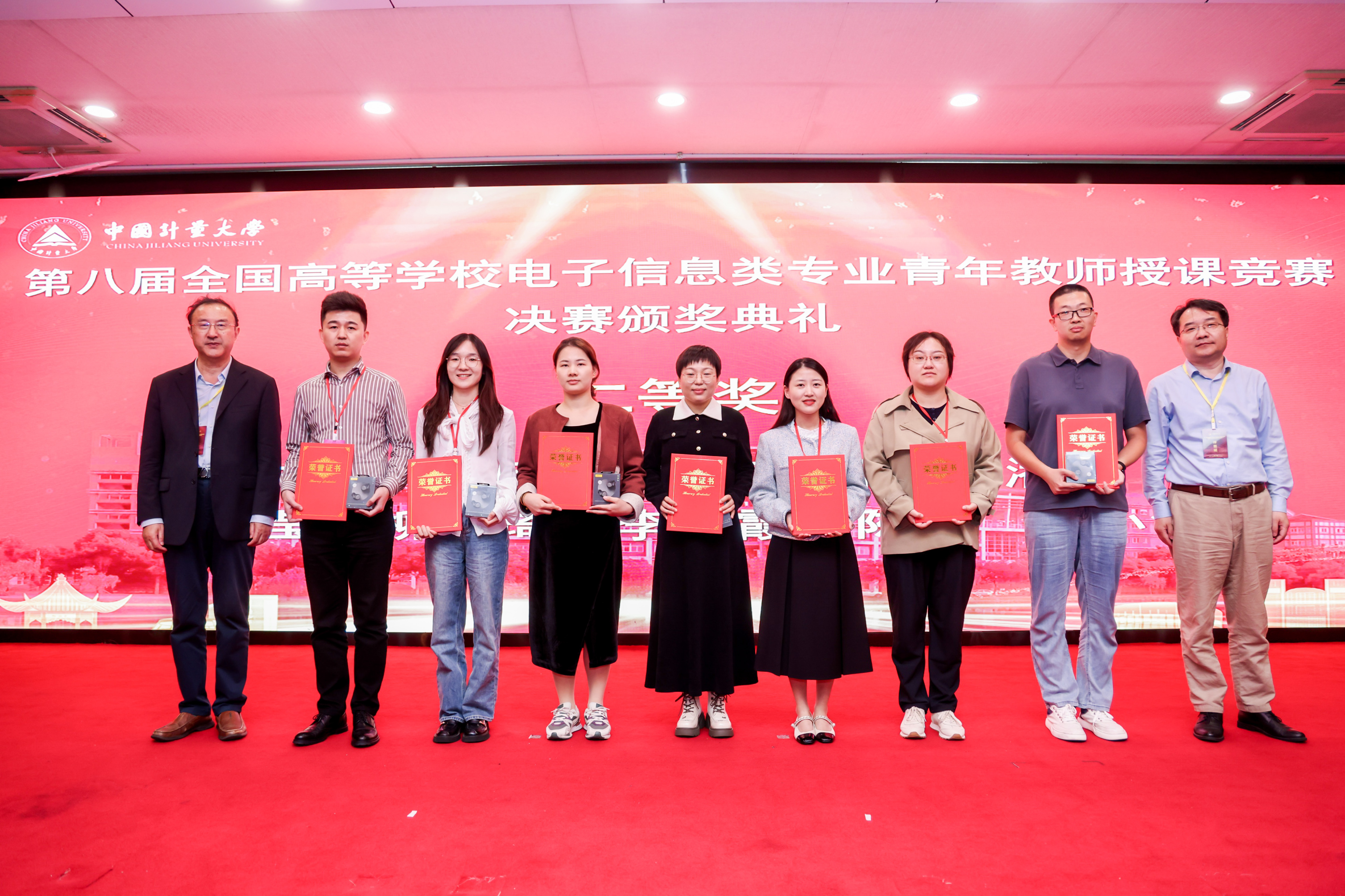 【本网讯】2024年10月19日至20日,由工业和信息化部教育与考试中心指导,教育部高等学校电子信息类专业教学指导委员会主办,中国计量大学承办的第八届全国高等学校电子信息类专业青年教师授课竞赛决赛在杭州举行,我校人事处(党委教师工作部)处长杜国宏带队参赛。经过激烈角逐,我校计算机学院陈美、自动化学院靳小钊、李艳霞等3名教师荣获全国二等奖,通信工程学院(微电子学院)李娟、自动化学院刘力源、杨强等3名教师荣获全国三等奖。