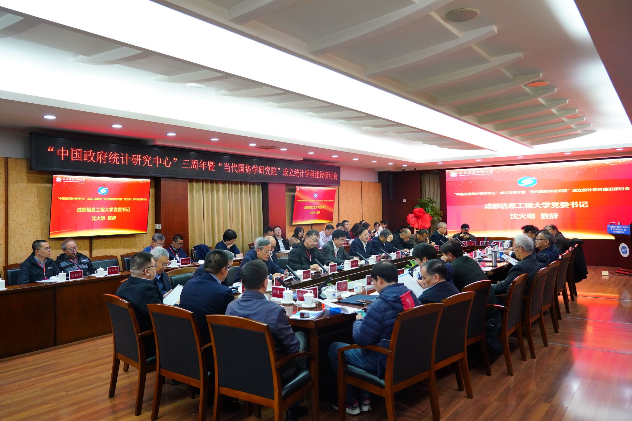 中国统计教育学会会长、全国应用统计专业研究生教指委主任委员、国家统计局原副局长毛有丰,国家统计局原副局长许宪春,国家统计局原总工程师文兼武,国家统计局统计教育培训中心主任齐占林,国家统计局统计科学研究所首席研究员许亦频,国家统计局原一级巡视员康君,中国统计出版社副总编辑陈维强,国家统计局四川调查总队总队长赵太想,四川省统计局党组书记曾俊林,我校党委书记沈火明等单位嘉宾出席会议,会议由统计学院院长李勇主持。