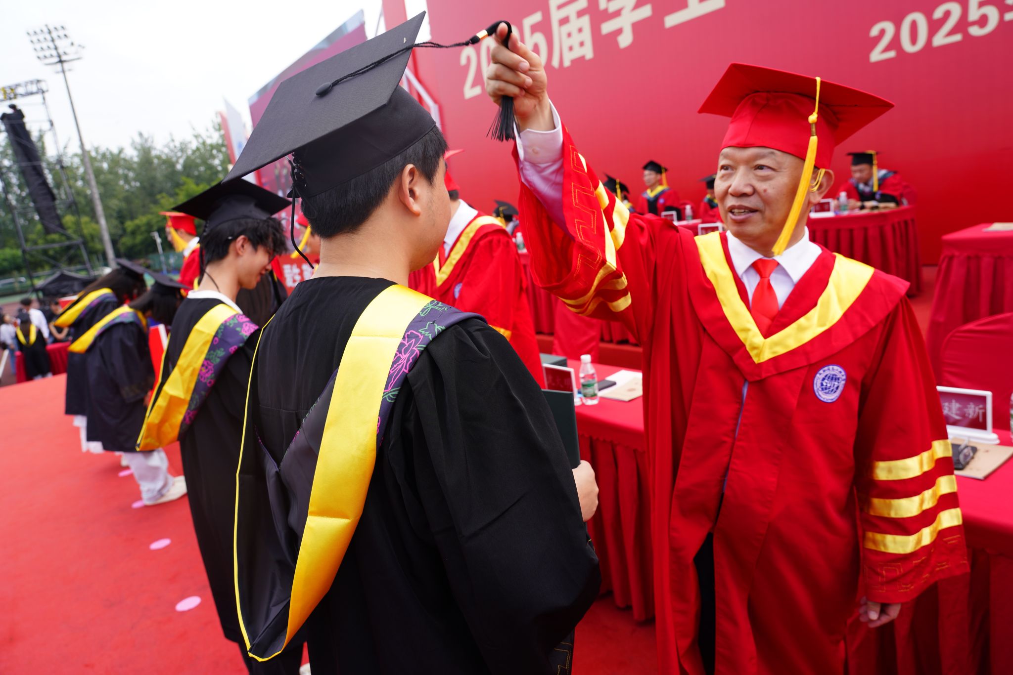 在全体师生热情洋溢地合唱校歌《有我担当》中,2025 届学生毕业典礼暨学位授予仪式圆满结束。母校期待毕业生们在时代的浪潮中做破浪的弄潮儿,在历史的星河里当璀璨的追光者,以高尚的道德情操、扎实的专业素养、昂扬的精神风貌,在各自的领域中发光发热,融入实现中华民族伟大复兴的中国梦的壮阔航程。