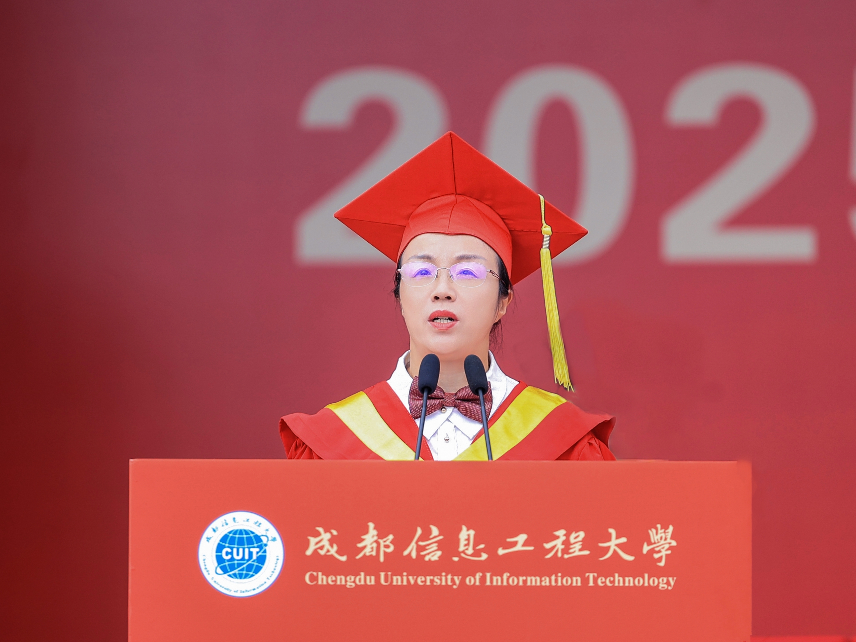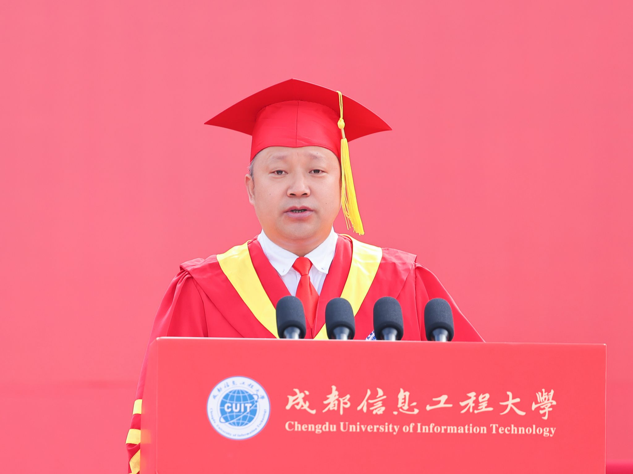 何建新在讲话中对全体毕业生寄予了三点希望,一是以定力为锚,在风雨洗礼中淬炼精神筋骨。定力是信仰与意志的熔铸,是“蓝图绘到底”的执着,“任尔风动”的从容,心火不灭的执着,暗夜秉烛的孤勇。愿你们涵养精神定力,在时代浪潮中锚定人生坐标。二是以自信为帆,在时代变局中开拓创新境界。高扬自信的风帆,在技术的洪流中勇往直前,既锚定学科深耕的“主航道”,更敢于在未知海域开辟“新坐标”。三是以笃行为楫,在文明长河中书写成信答案。将所学所思带入广阔天地,在行动中扎根、在服务中成长,在社会第一线写下属于自己的答案。