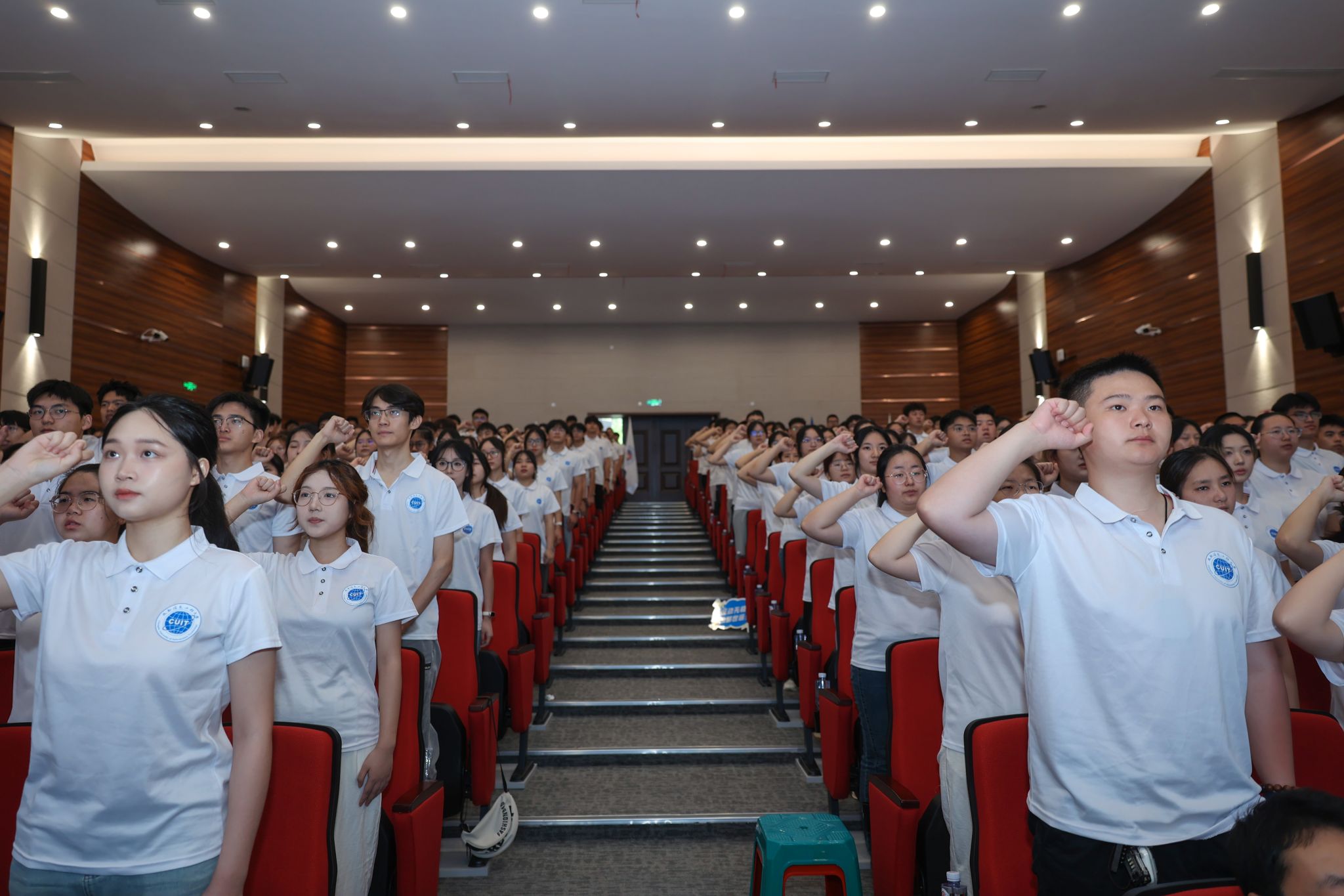 志愿者代表张馨月带领全体志愿者进行宣誓。全体志愿者庄严宣誓,句句誓言铿锵有力,充分展现了志愿者们决战决胜的信念,饱含着青春志愿的不竭热情。