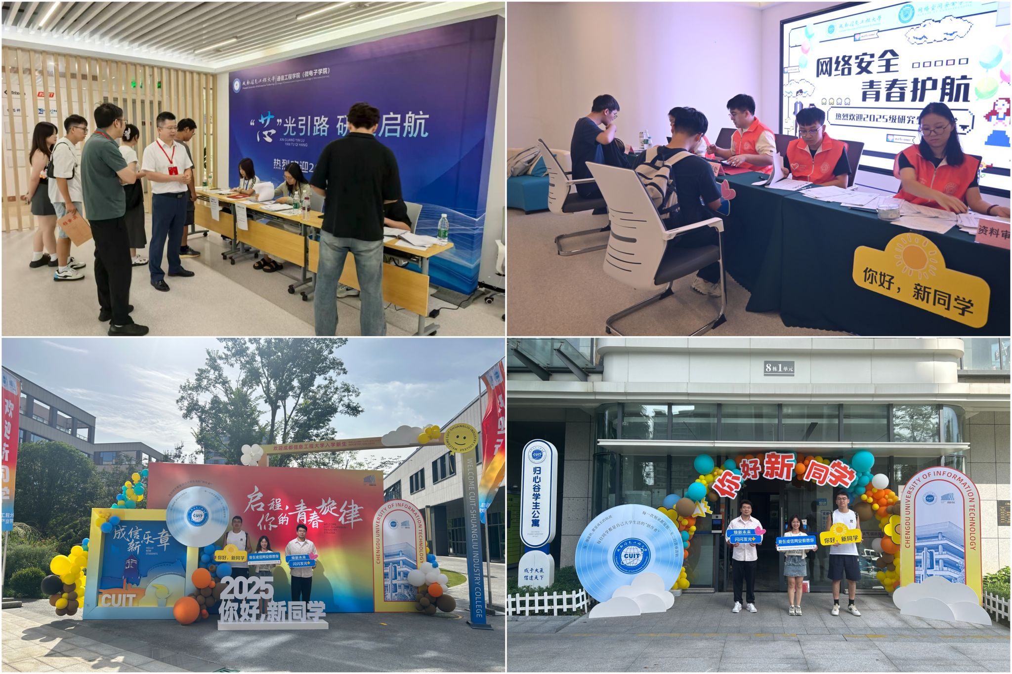 各学院别出心裁地布置喜庆精美的合影墙、欢迎标语、签名板等特色打卡点,让新同学感受到温馨舒适的校园氛围。大气科学学院精心策划的“家乡连线”活动,让新生们用图钉和线将家乡与学校相连,钉线勾勒出跨越山海的缘分;电子工程学院在迎新点位展示全国大学生电子设计竞赛优秀作品,志愿者带领新生操作“打靶小车”;通信工程学院在合影墙上用新生名字排列成学院名称,为2025级新生打造专属迎新记忆……创意性的欢迎方式,让新生和家长们深切感受到专属于成信人的真情告白与祝福鼓励。