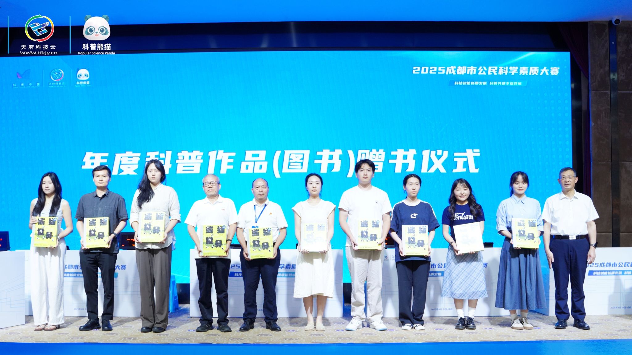 大赛开始前,现场举行了年度科普作品(图书)赠书仪式。余孝其向来自成都市的五大人群代表,赠送了2025年度优秀科普图书。