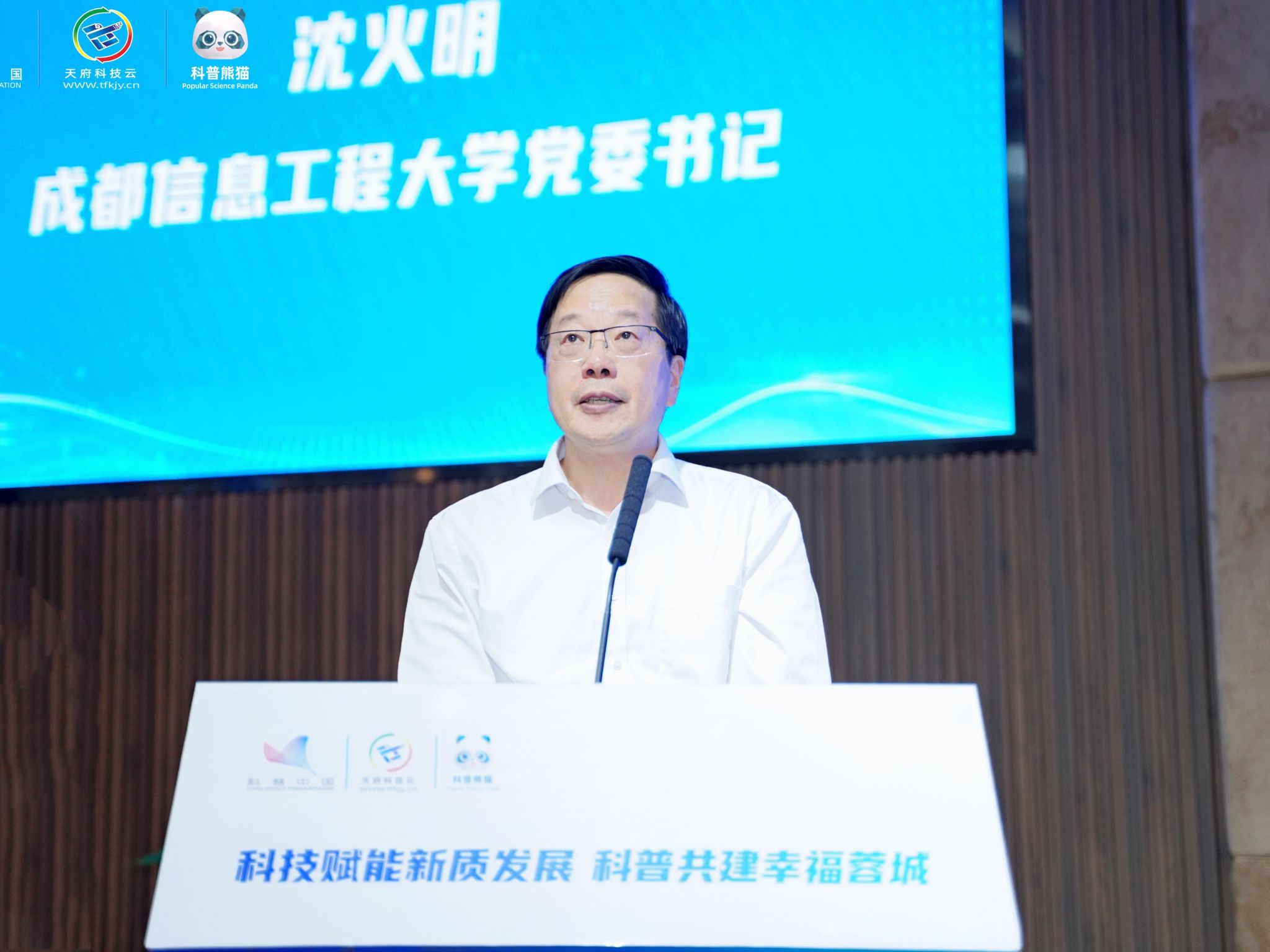 沈火明代表全校师生,向莅临现场的各位领导、专家评委、参赛选手及各界朋友致以最热忱的欢迎。他介绍了学校在人才培养、学科建设、科学研究等方面的基本情况,并重点推介了我校科普基地的建设成效以及取得的科普成果。他表示,学校承办本次大赛,深感荣幸,学校将以此次活动为新契机,持续释放学科与平台优势,深度服务地方科普事业,在提升成都全民科学素质的进程中,贡献更多“成信大”的智慧与力量。