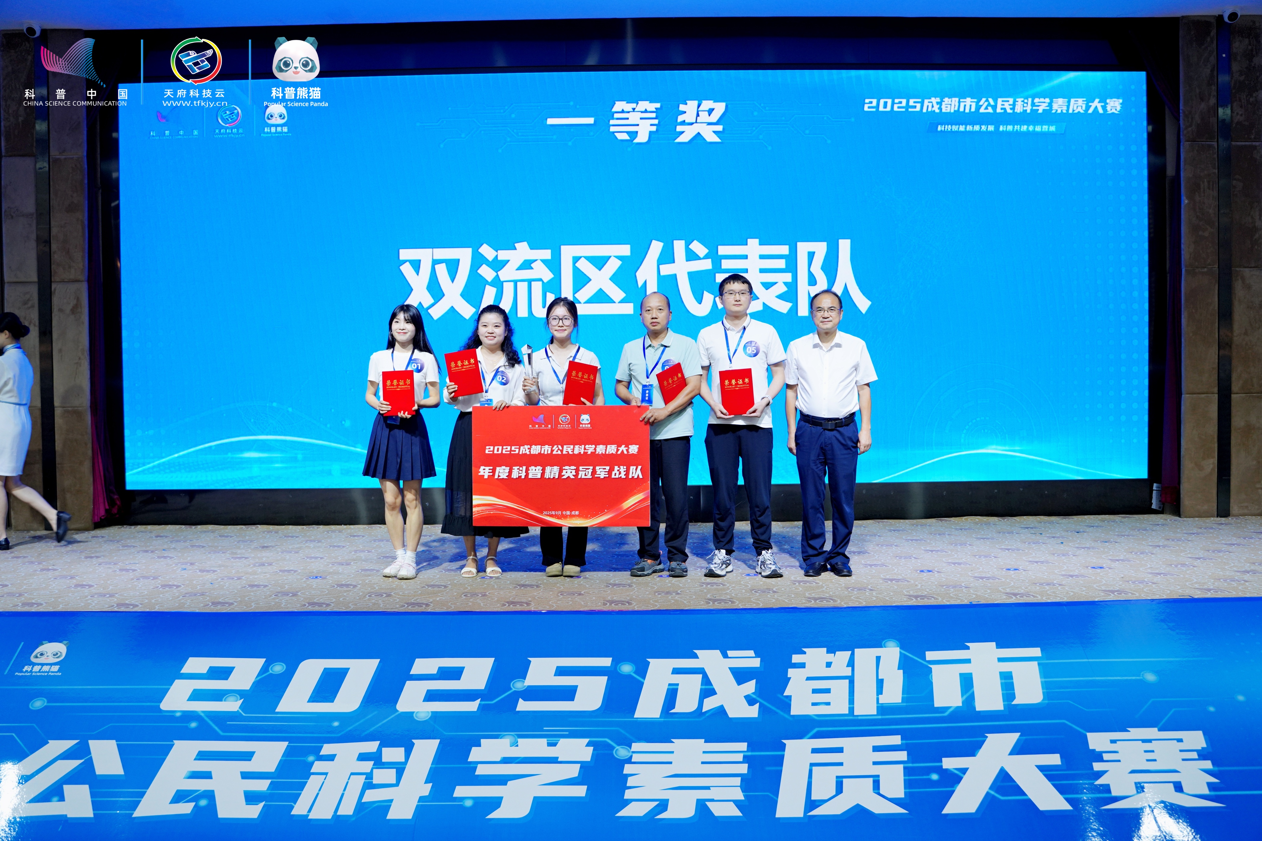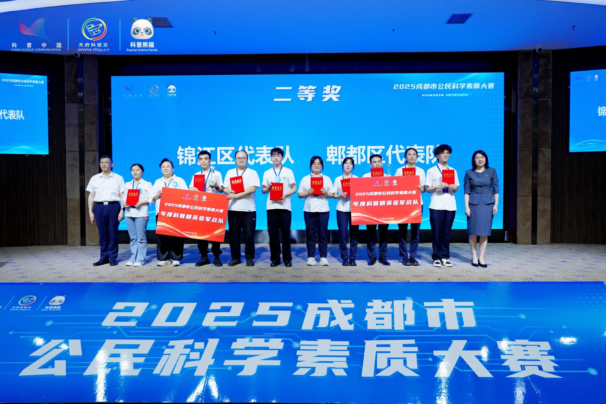本次大赛创新采用“线上+线下”联动模式,充分展现了成都市民“讲科学、爱科学、用科学”的精神风貌。大赛自7月启动以来,吸引了近10万人次参与线上答题,活动总浏览量突破27万次,成为近年来成都市参与面最广、影响力最大的科普盛事之一。经过层层选拔,来自全市的23支队伍中的6支精英团队晋级决赛。总决赛共设科普展演、必答题、抢答题、风险题四个环节,全面考察选手的科学知识储备、应变能力、表达能力与团队协作精神。比赛现场,选手们以扎实的科学素养、敏捷的思维反应和出色的舞台表现,赢得了评委和观众的阵阵掌声。最终双流区代表队优异成绩荣获一等奖,锦江区代表队和郫都区代表队获得二等奖,温江区代表队、成华区代表队和简阳市代表队获得三等奖。