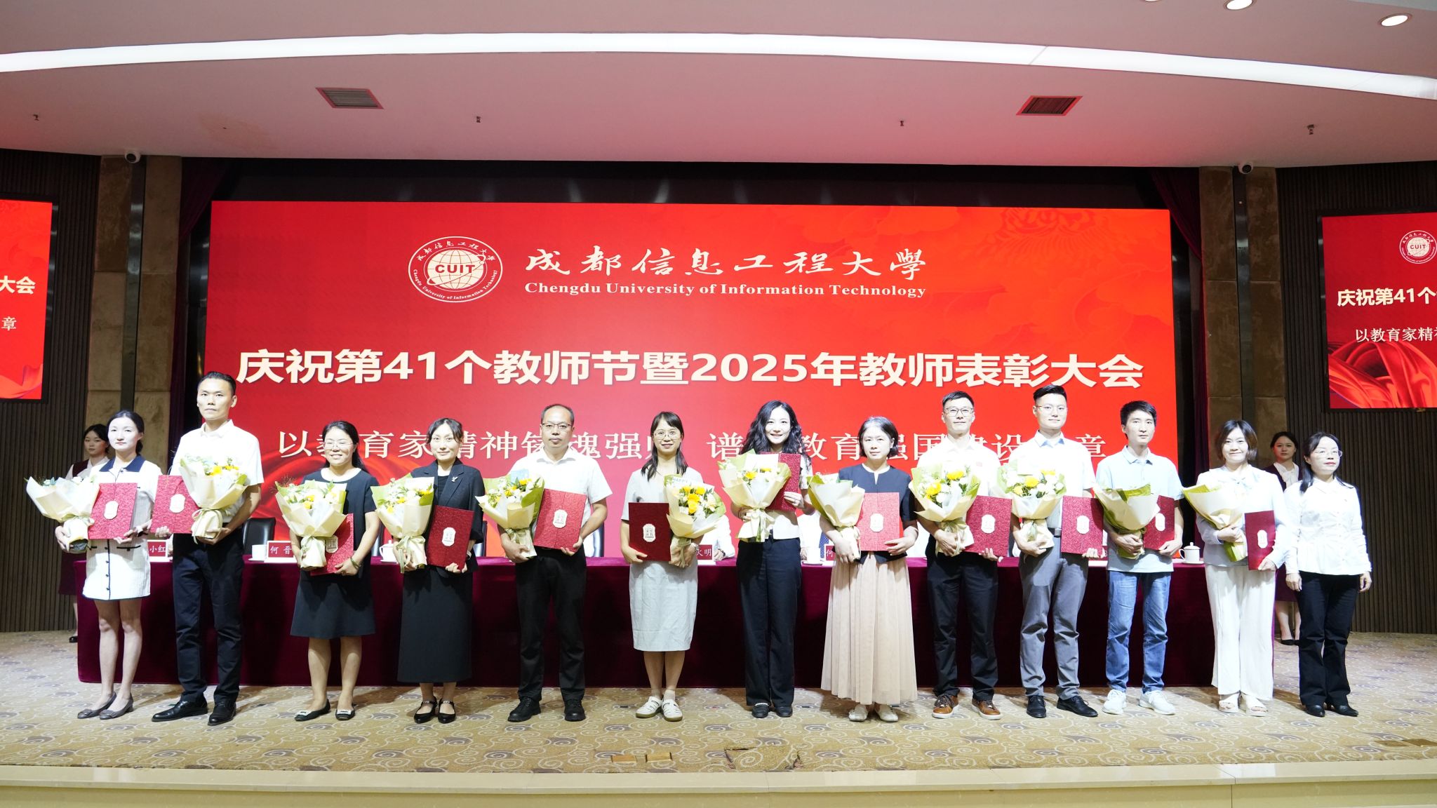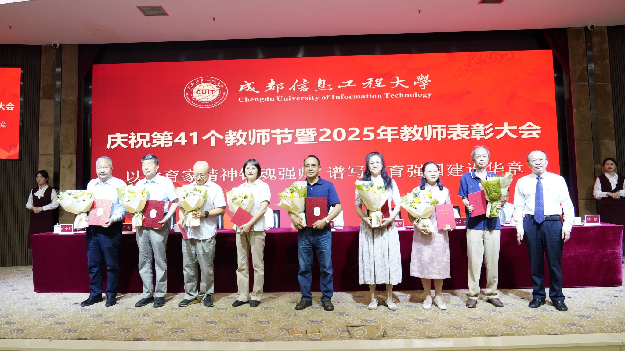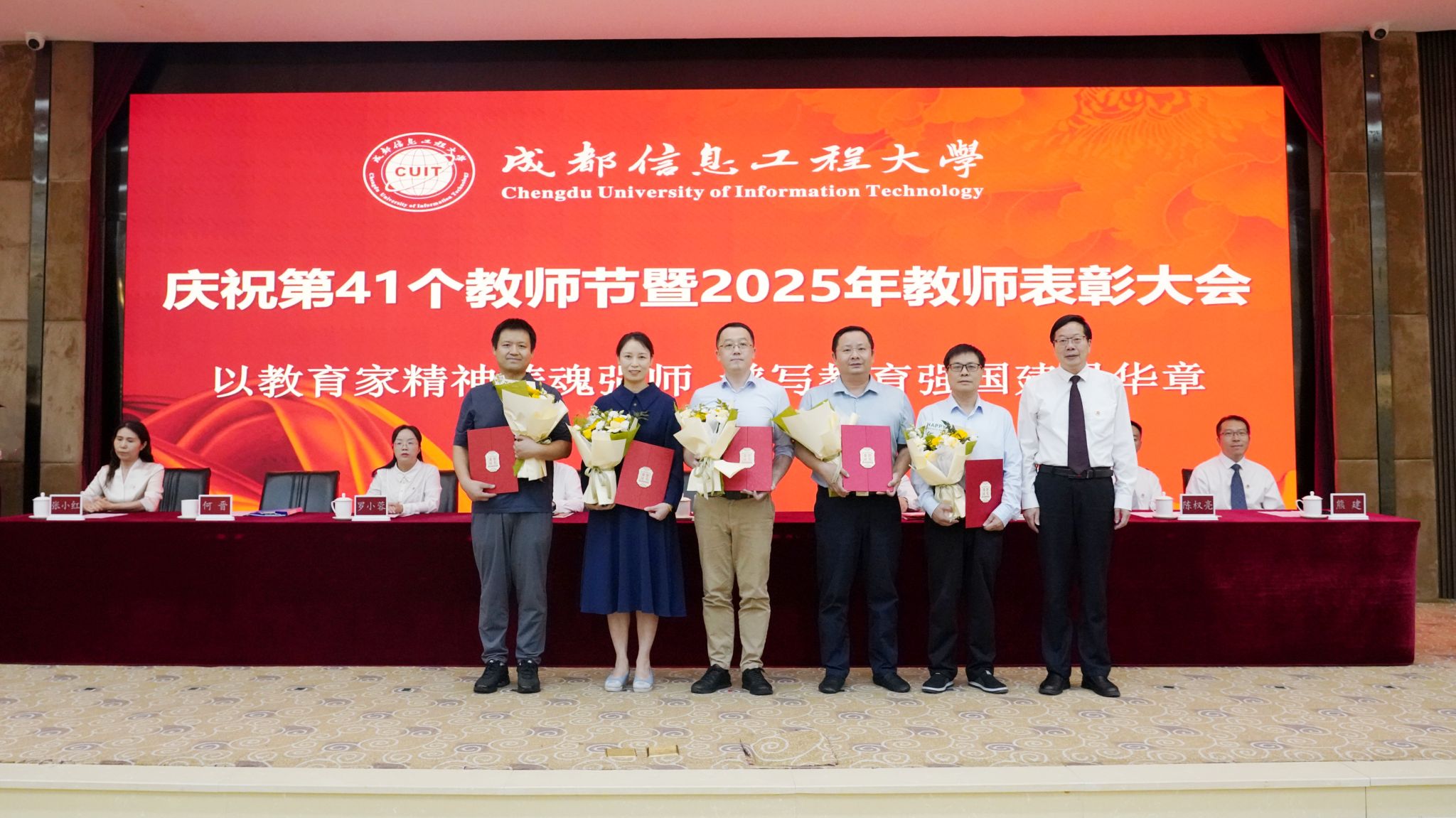 学校对在各个领域取得突出成绩、为学校发展作出卓越贡献的优秀教师予以表彰,学校校长何建新宣读了表彰文件。张葛祥、李勇两位教授遴选为享受国务院特殊津贴专家;大气科学学院院长华维教授获“全国气象教学名师”称号;大气科学学院葛非教授获国家级人才称号;唐婷婷、李勇、陈浩3名教师获省级人才称号;赵长名老师获成都市人才称号。学校启动荣誉体系,教务处、科技处获“管理服务先进集体”称号;自动化学院、人工智能学院获“就业工作先进集体”称号;昌燕等5名教师获“研究生优秀指导教师”称号;郜东瑞等8名教师获“成信科技英才奖”;于尧等25名教师获“管理服务先进个人”称号;侯倩等10名教师获“就业工作先进个人”称号;田媛等10名辅导员获我校“十佳辅导员”称号。白杨、郭俊等10名教师获学校“青年教师教学奖”。此外,还有数10名教师在“第九届全国高等院校英语教师教学基本功大赛”“第十二届电工电子基础课程实验教学案例设计竞赛”等教学竞赛中获国家级、省级奖项。学校还对本年度获得“光荣从教30年”荣誉称号和“光荣退休奉献奖”的退休教师予以表彰。