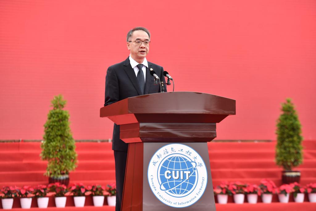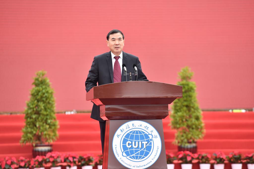 罗强在致辞中代表省委、省政府对成信大建校70周年表示热烈祝贺。他说,成信大作为四川省重点发展的省属普通本科院校,在70年的办学过程中,主动服务国家战略需求和地方经济社会发展,在气象、统计、国防建设等方面培养了大批优秀人才,为国家和地方经济社会发展作出了重要贡献。他希望同学们以实现中华民族伟大复兴为己任,坚守理想、刻苦学习,努力做中国特色社会主义事业的合格建设者和可靠接班人;希望老师们牢记为党育人、为国育才的使命任务,立德修身、潜心治学,当好学生成长成才的引路人;希望学校落实立德树人根本任务,聚焦“双一流”建设目标,对接国家和四川重大发展战略需求,扎实开展“对标竞进、争创一流”活动,推进学校内涵式、高质量、高水平发展。他表示,省政府将一如既往地支持学校的发展和建设,创造更加良好的环境。