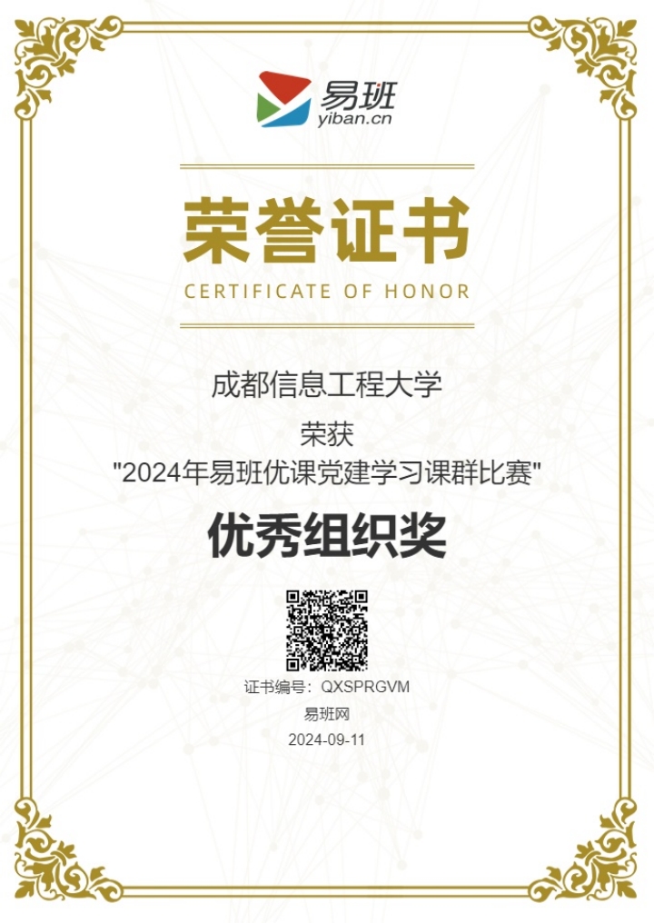 我校易班指导教师陈洁丽、达苗、罗米娜、张秋敏、罗霞、胡敏、田媛、陈鹏飞、雷媛荣获“2024年易班优课党建学习课群比赛”优秀指导教师荣誉。