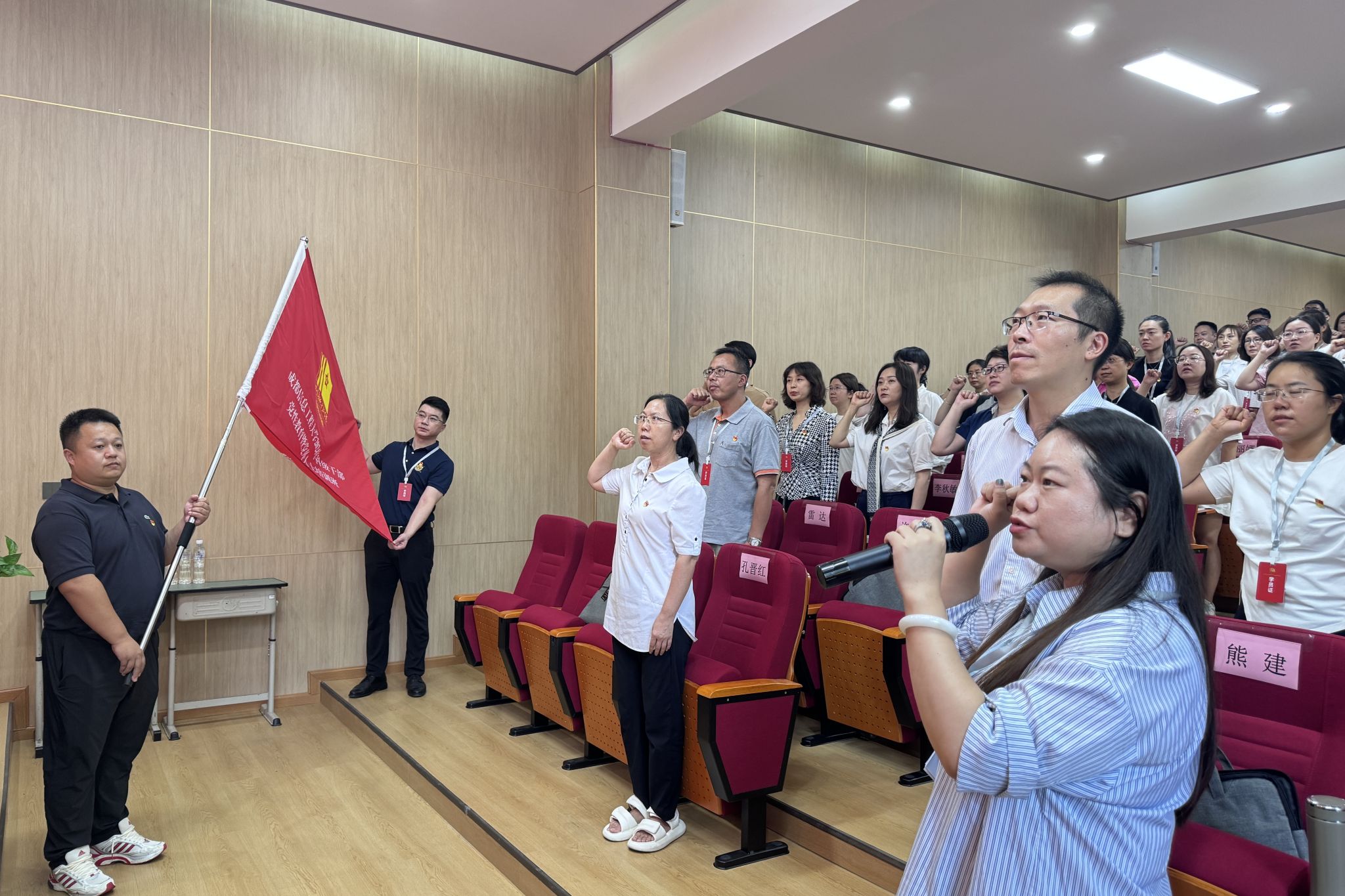 开班仪式在庄严嘹亮的国歌声中拉开帷幕,学员们齐声高唱国歌,进行入学宣誓,举行授旗仪式。熊建在讲话中勉励全体学员要珍惜此次难得的学习机会,通过系统学习深入思考和广泛交流,深刻领悟“两个确立”的决定性意义,增强“四个意识”、坚定“四个自信”、做到“两个维护”,进一步巩固统一战线的共同思想政治基础,更好地担负起推动学校高质量发展的重任。