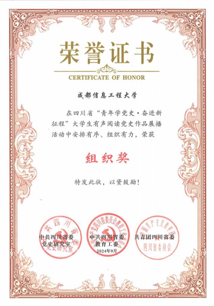 【本网讯】10月10日,由省委党史研究室、省委教育工委、团省委主办的四川省“青年学党史·奋进新征程”大学生有声阅读党史作品展演活动在成都举行。我校学子王璐琪、胥子博分别获英文阅读作品优秀奖、中文阅读作品优秀提名奖,学校获活动组织奖。