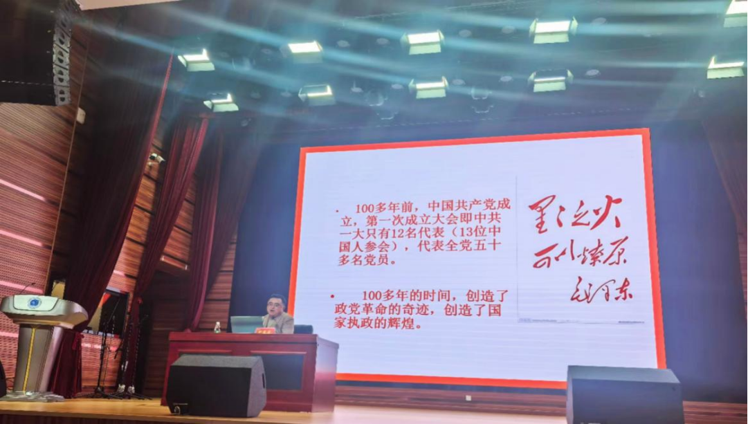 刘岩岩以“寻路:中国共产党早期革命历程”为题,从中国共产党建立的背景、关键人物、党组织早期活动等不同方面对中国共产党的建立进行了全方位、多角度的细致解读,详细介绍了革命火种从萌芽到成长的整个过程。他以风趣幽默的语言表达和丰富的史料知识回顾了中国共产党建党前后的光辉历程,让大家仿佛身临其境地感受到了先辈们的热血与担当,激励着同学们在新时代的征程中奋勇前行。