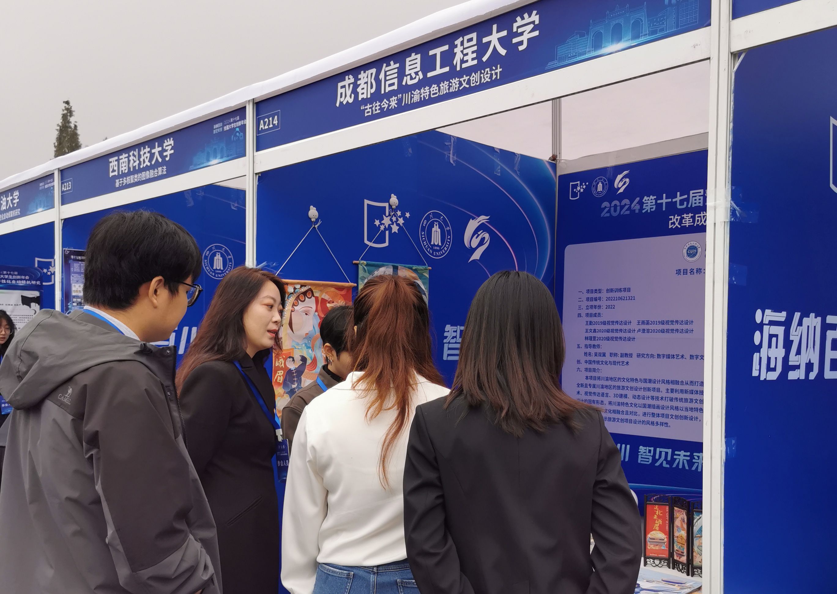 【本网讯】第十七届全国大学生创新年会共收到部属高校和地方教育主管部门推荐项目1006项。经过相关专家初评、“国创计划”专家工作组复选,共有510项成果入选年会,其中学术论文200篇、创新创业项目改革成果展示250项、创业推介项目60项。我校国家级创新训练项目——“古往今来”川渝特色旅游文创设计,作为创新创业项目改革成果展示,入选本届年会。