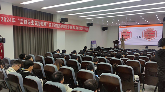 就业指导讲座上,“智汇巴蜀”成渝地区双城经济圈第三届大学生模拟求职招聘大赛川渝总决赛一等奖获得者欧阳俊棋以《从校园到职场:跨越“生涯鸿沟”的攻略》为题,介绍了当前的就业形势,探讨了不同职业发展阶段所需的核心能力和心态调整策略,建议学生们通过不断学习新技能和积累实践经验,逐步达成职业目标。