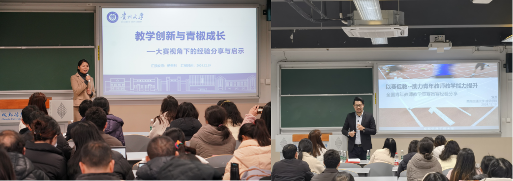 杨贵利副教授作了题为《教学创新与青椒成长——大赛视角下的经验分享与启示》的专题报告。她针对备赛和参赛两个关键环节,向与会教师分享了参加全国高校教师教学创新大赛和全国高校青年教师教学竞赛的经验,并以《生物化学》课程教学为例,简短展示了参赛时的教学风采。她强调,教学应与时俱进,积极融合人工智能、知识图谱等新技术和新工具,丰富教学形式,创新教学方法;教学要与科研同向同行,二者相辅相成、互相促进,并勉励参会教师要甘为“人梯”,托举学子向上攀登。
